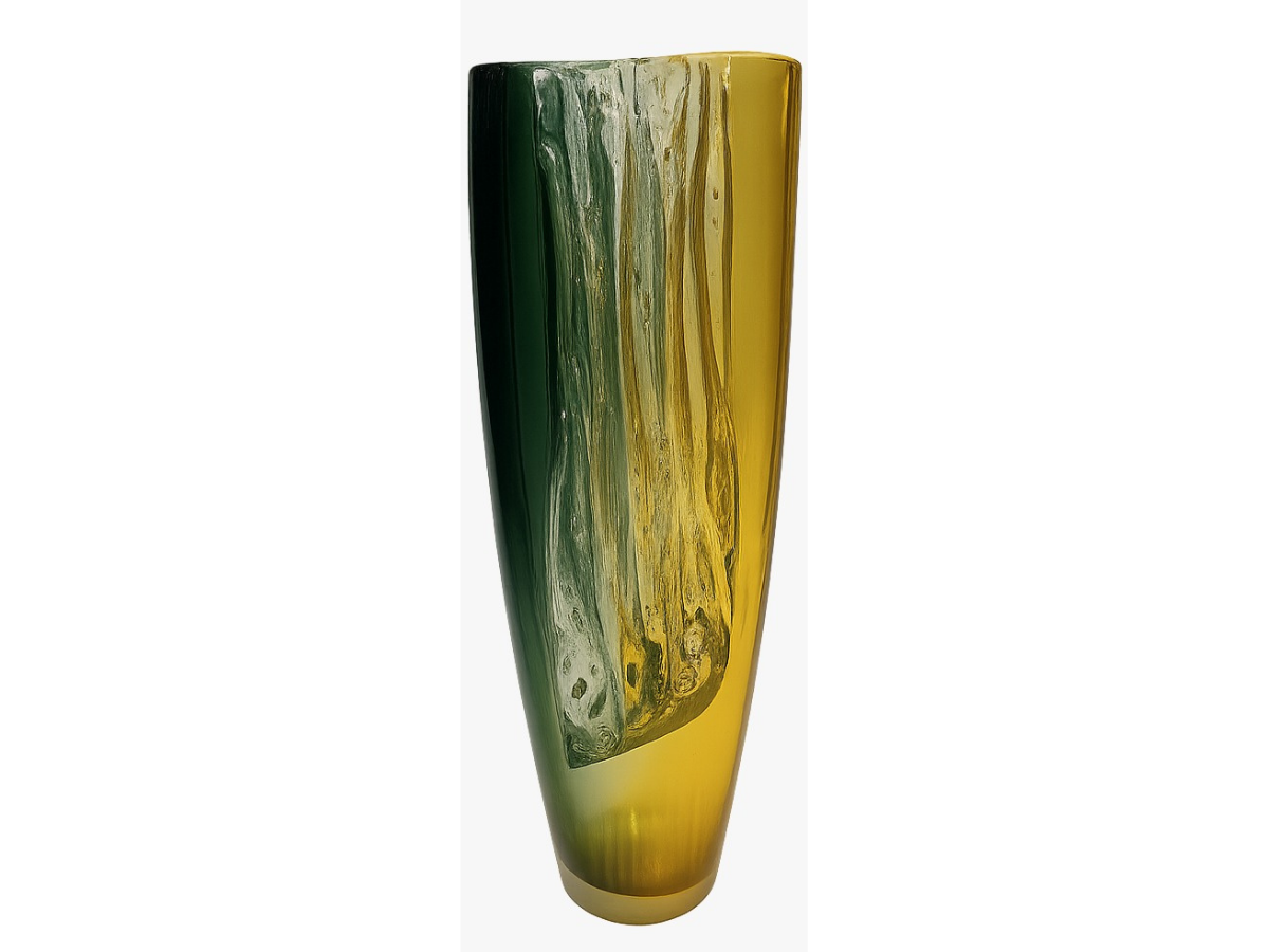 Diese edle Glasvase vereint Eleganz und künstlerische Handwerkskunst in einem harmonischen Farbverlauf von tiefem Smaragdgrün bis warmem Bernstein-Gold. 🌿✨