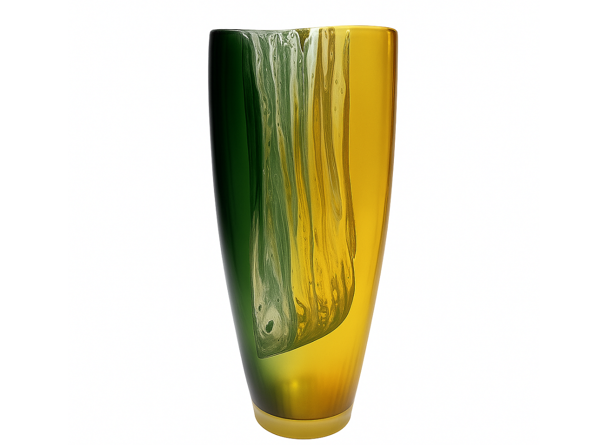 Diese edle Glasvase vereint Eleganz und künstlerische Handwerkskunst in einem harmonischen Farbverlauf von tiefem Smaragdgrün bis warmem Bernstein-Gold. 🌿✨