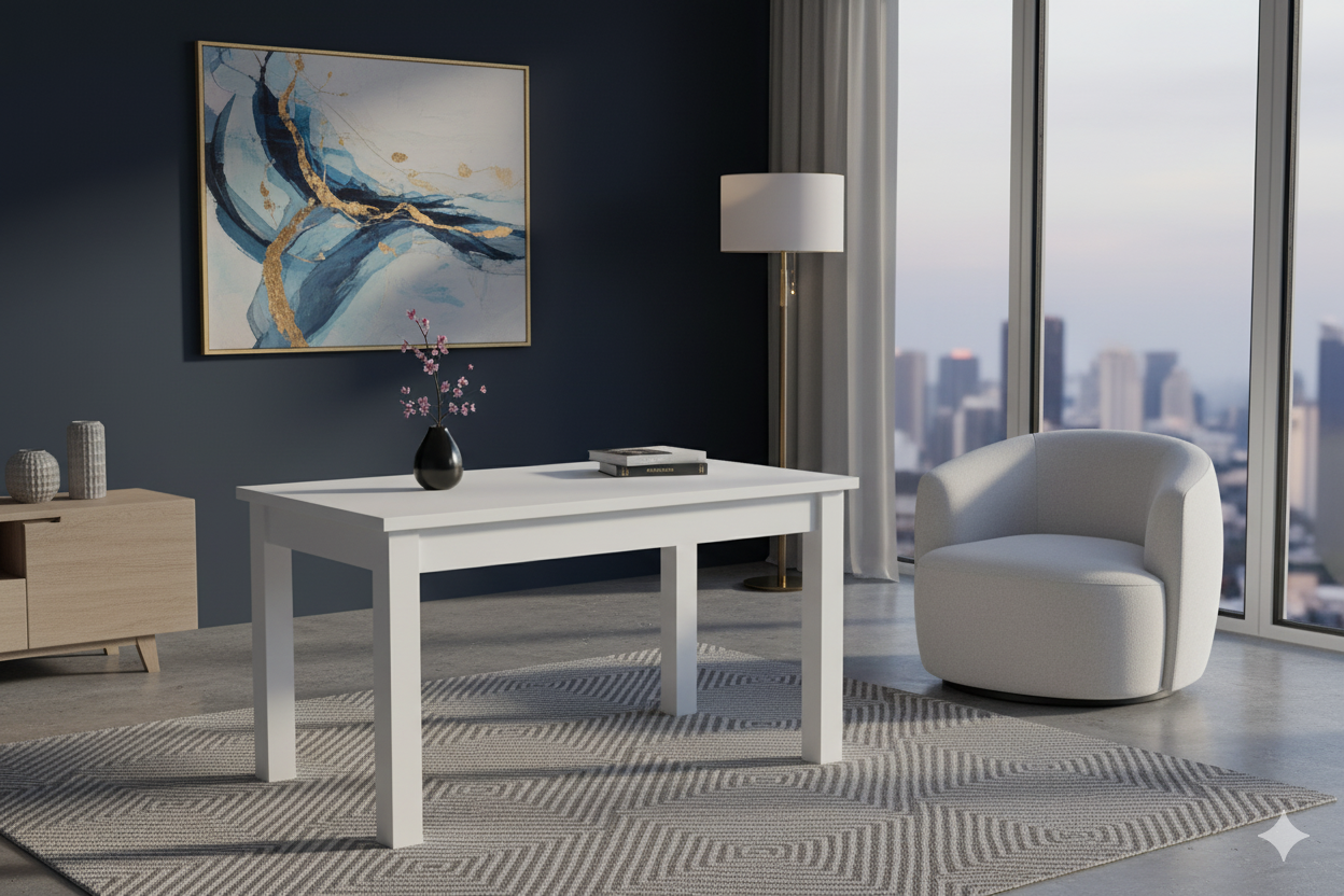 Die elegante weiße Oberfläche sorgt für ein helles, freundliches Ambiente und lässt sich wunderbar mit verschiedenen Einrichtungsstilen kombinieren.