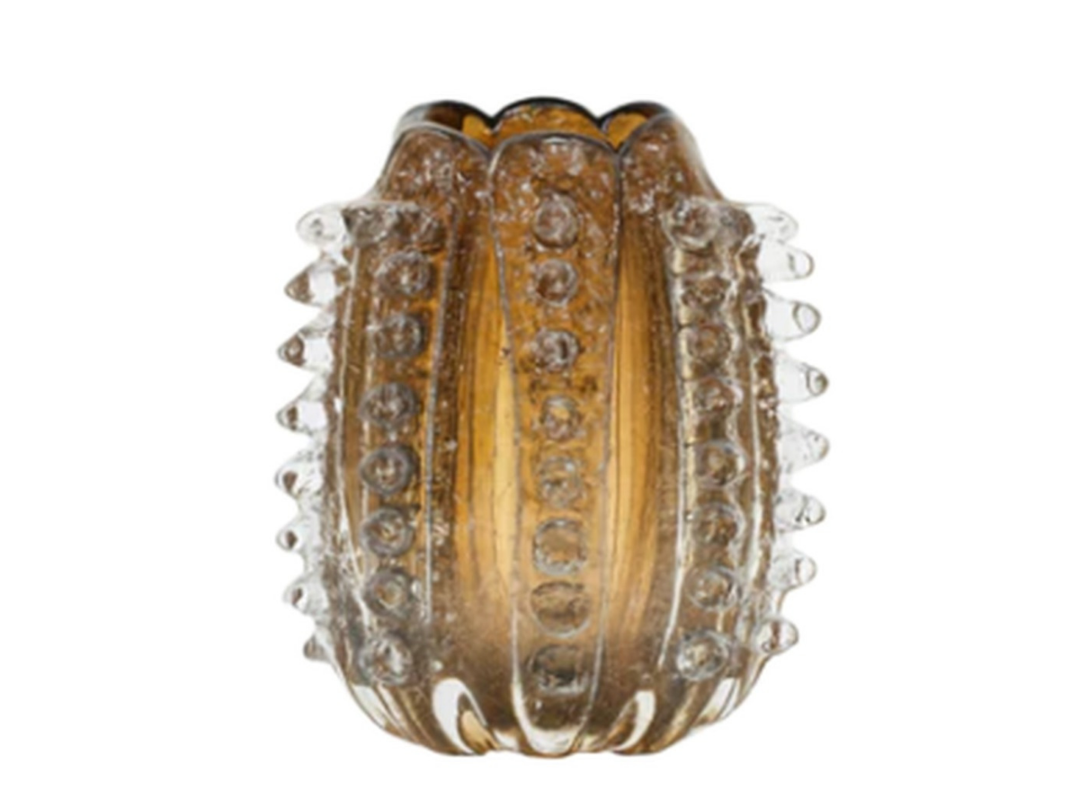 Kompakt und stilvoll – diese Vase vereint handgefertigtes Glas mit einer modernen, amberfarbenen Optik. Die runde Form und das strukturierte Design reflektieren das Licht auf wunderschöne Weise. Perfekt für Beistelltische, Regale oder als dekorativer Akzent im Wohnzimmer.