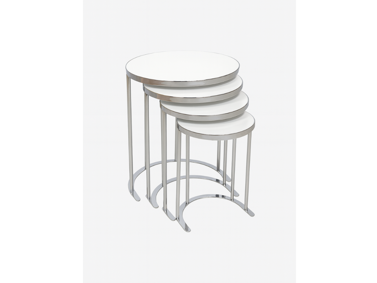 Vier unterschiedlich große Tische lassen sich platzsparend ineinanderschieben. Ideal als Beistell-, Deko- oder Serviertische.