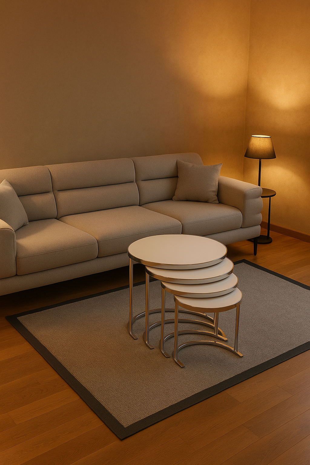 Das runde Metal Chrom – Weiß Galaxy 4er Zigon-Set verbindet moderne Ästhetik mit hoher Funktionalität. Die glänzende Weiß Galaxy Oberfläche und das verchromte Metallgestell verleihen dem Set ein elegantes, zeitloses Erscheinungsbild. Durch das ineinander schiebbare Design ist es besonders platzsparend und vielseitig einsetzbar.