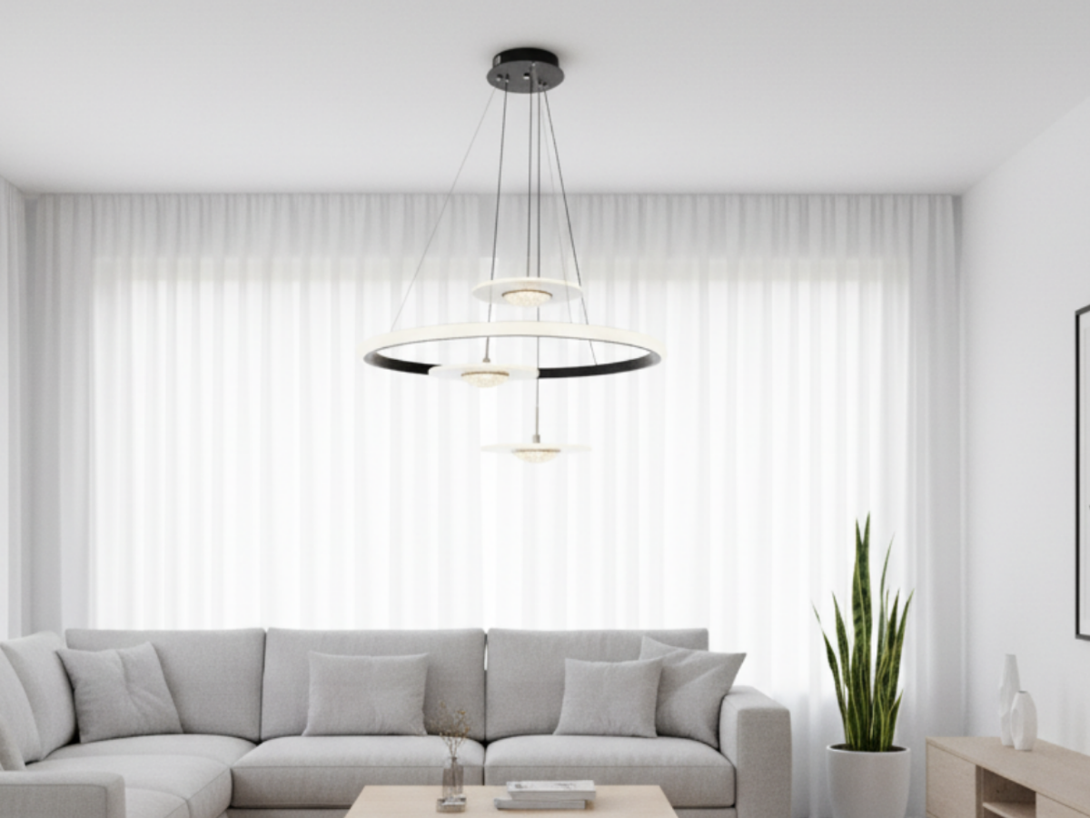 Diese moderne LED-Deckenleuchte mit einem Durchmesser von 500 mm vereint elegantes Design mit hochwertiger Materialverarbeitung.