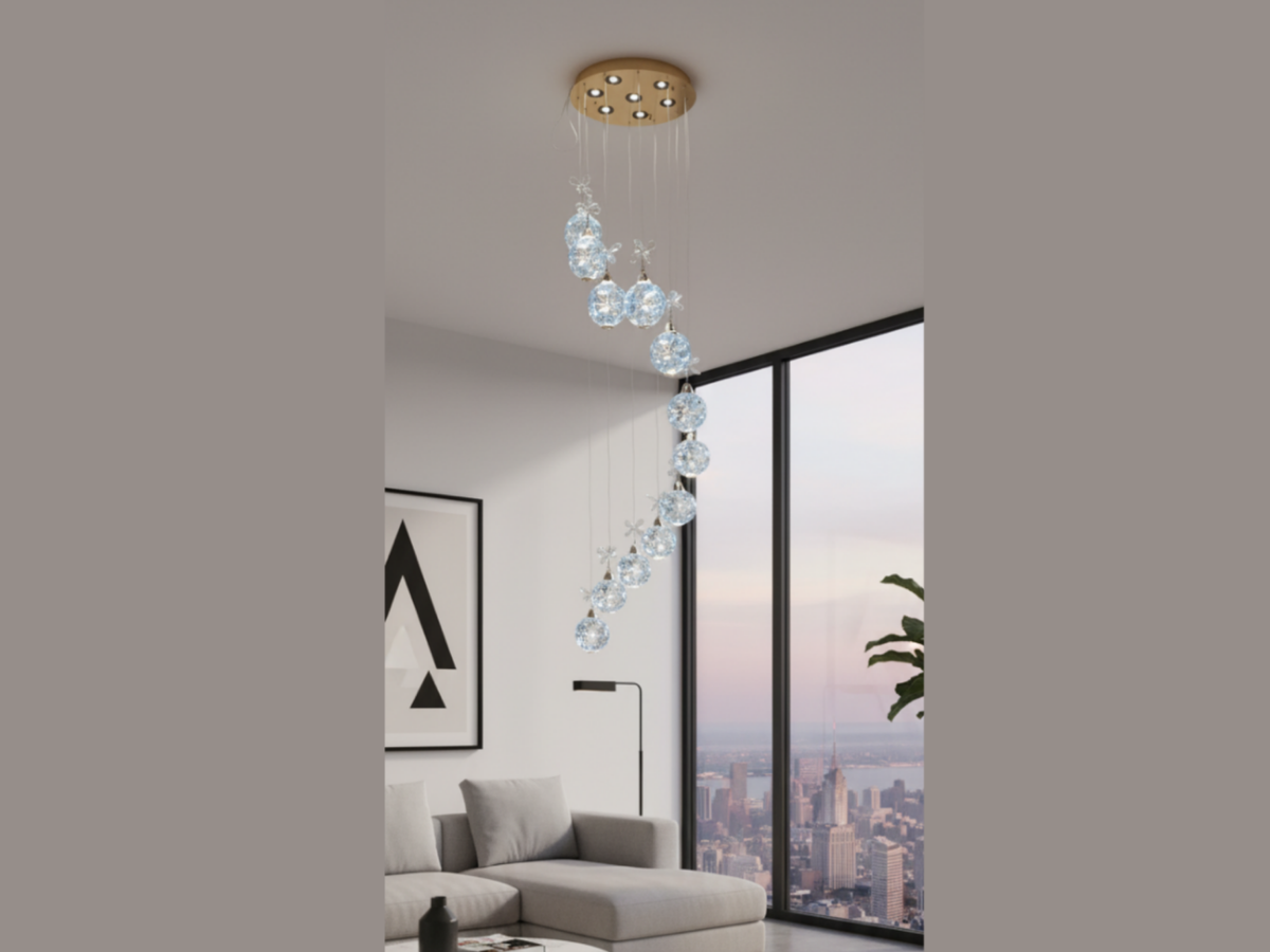 Diese stilvolle LED-Hängeleuchte in S-Form wurde speziell für Treppenhäuser oder hohe Räume entwickelt.