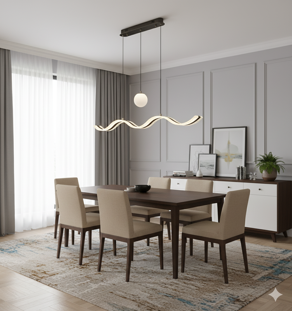 Die integrierte LED-Technologie sorgt für eine gleichmäßige und energieeffiziente Beleuchtung und schafft eine warme, stilvolle Atmosphäre – perfekt für Wohnräume, Esszimmer oder Flure.