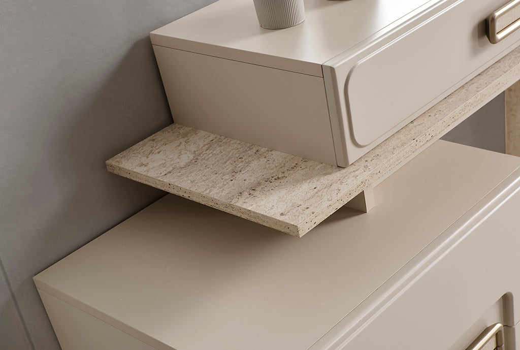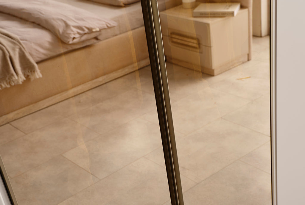 Zeitloses Design, funktionale Details und pflegeleichte Materialien: Mit dem Akkor Schlafzimmer-Set richten Sie Ihr Schlafzimmer komfortabel und harmonisch ein. Das Set wird mit 6-türigem Kleiderschrank, Bett (160 cm), 2 Nachttischen, Kommode & Spiegel angeboten – wahlweise mit oder ohne Bettkasten.
