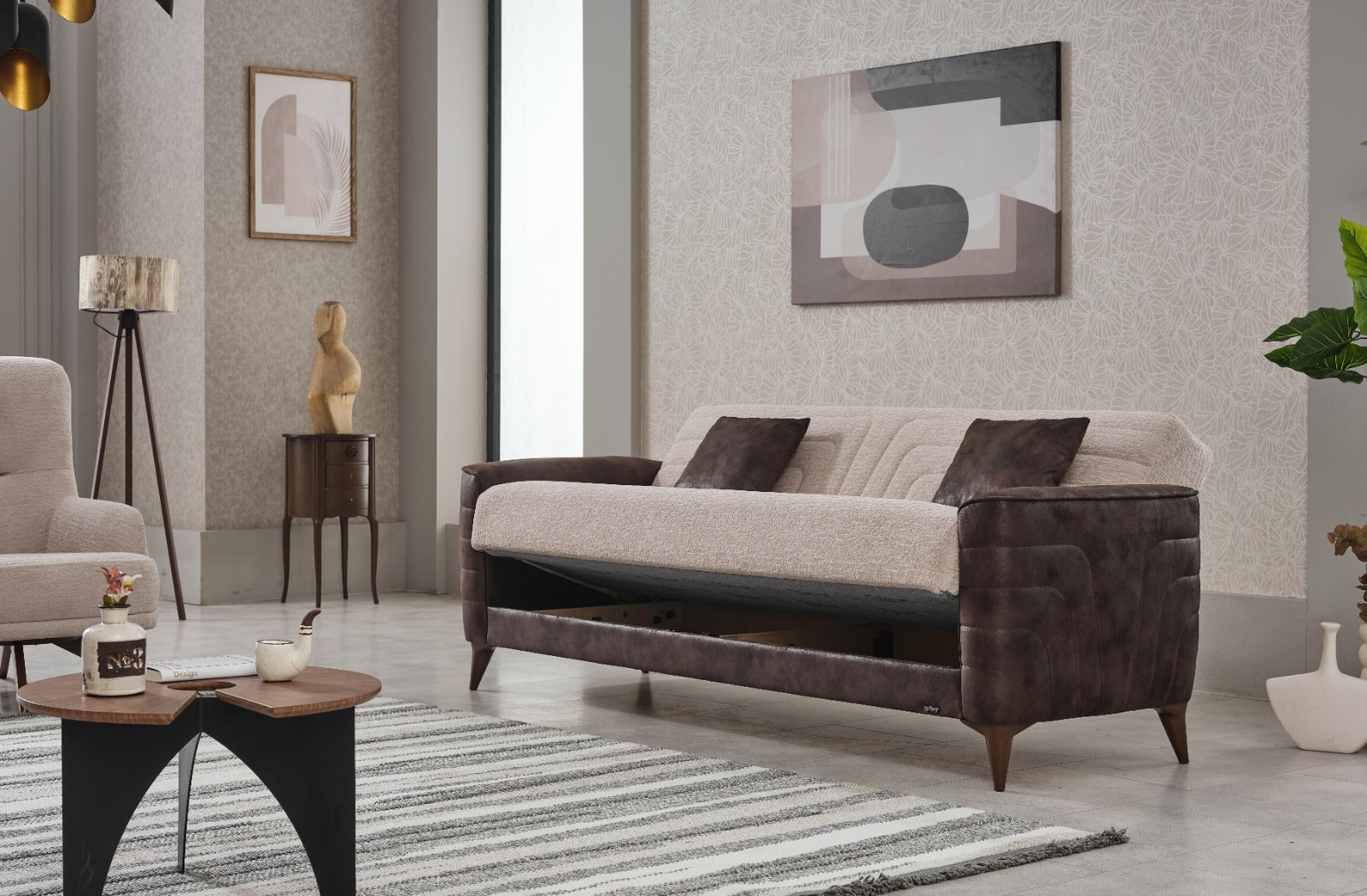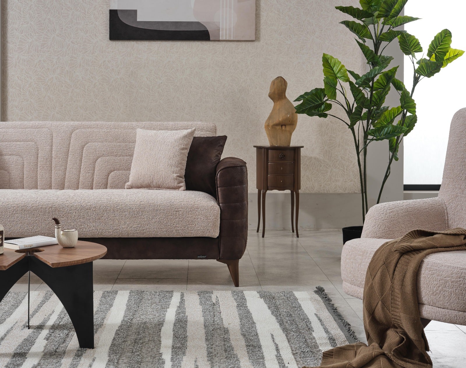Die Alaska Terra Couchgarnitur vereint modernes Design mit hoher Funktionalität und bietet flexible Nutzungsmöglichkeiten für den Alltag. Dank ihrer Kanapee-Form lässt sich die Garnitur mühelos in ein komfortables Doppelbett verwandeln und ist somit ideal für Gäste oder kleinere Wohnräume.