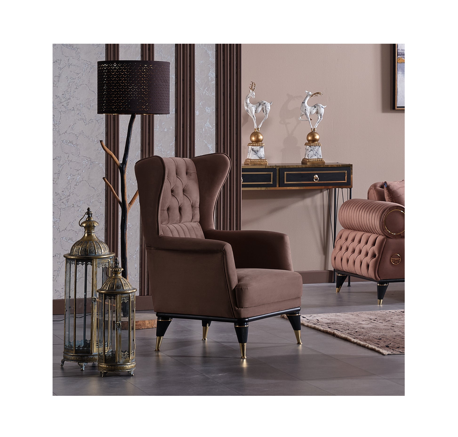 Das Madrid Sofa-Set bringt luxuriösen Lounge-Charme in Ihr Zuhause. Weicher Samtbezug, markante Chesterfield-Knopfsteppung, gerundete Armlehnen mit Ziernähten und feine Metallfüße sorgen für einen eleganten Auftritt. Die gleichmäßig gepolsterten Sitzflächen bieten angenehmen Halt für lange, entspannte Abende – im großzügigen 3-Sitzer, im kompakten 2-Sitzer und im einladenden Sessel.