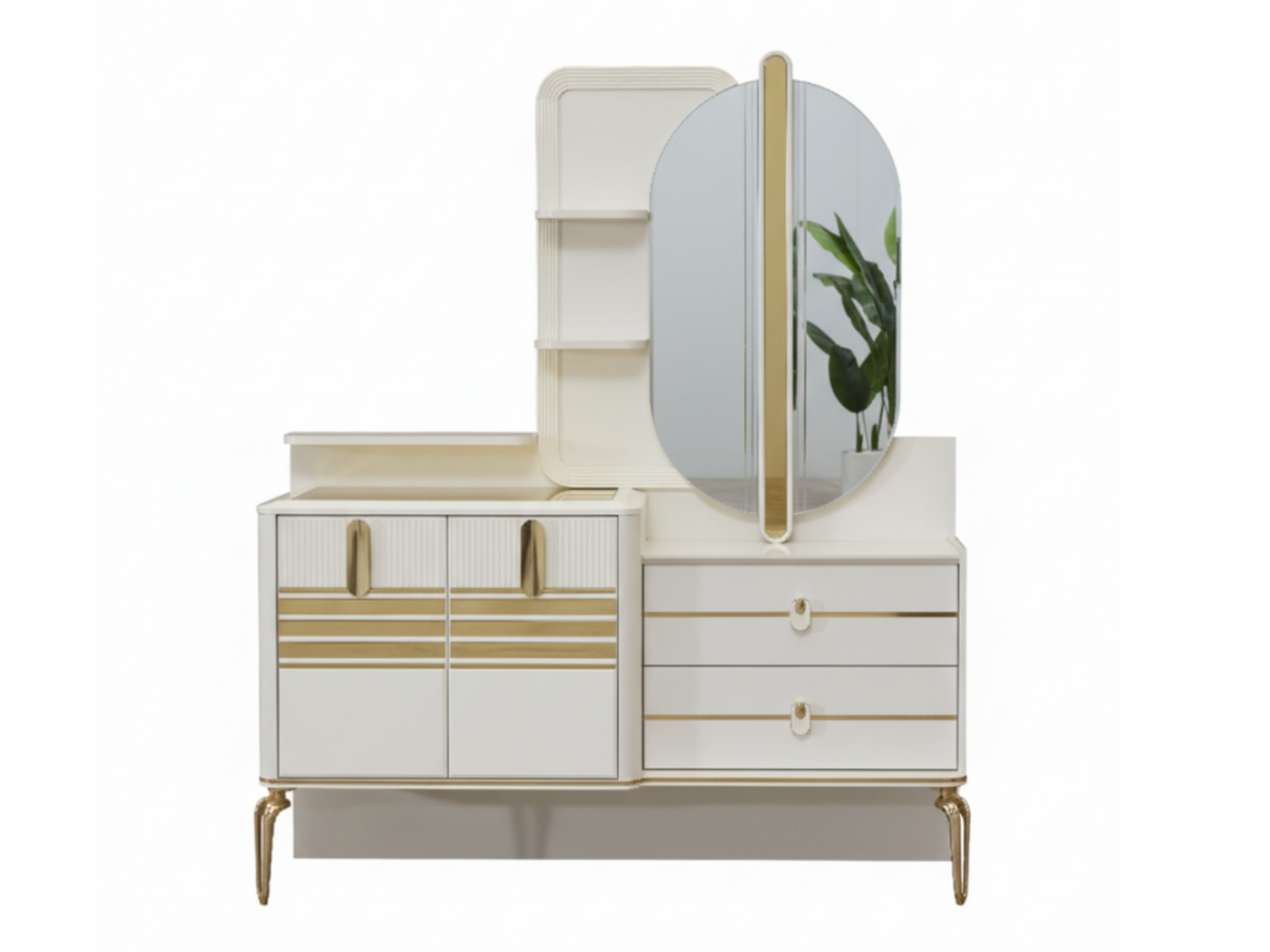 Die Berlin Schminkkommode vereint moderne Eleganz mit funktionaler Raffinesse.