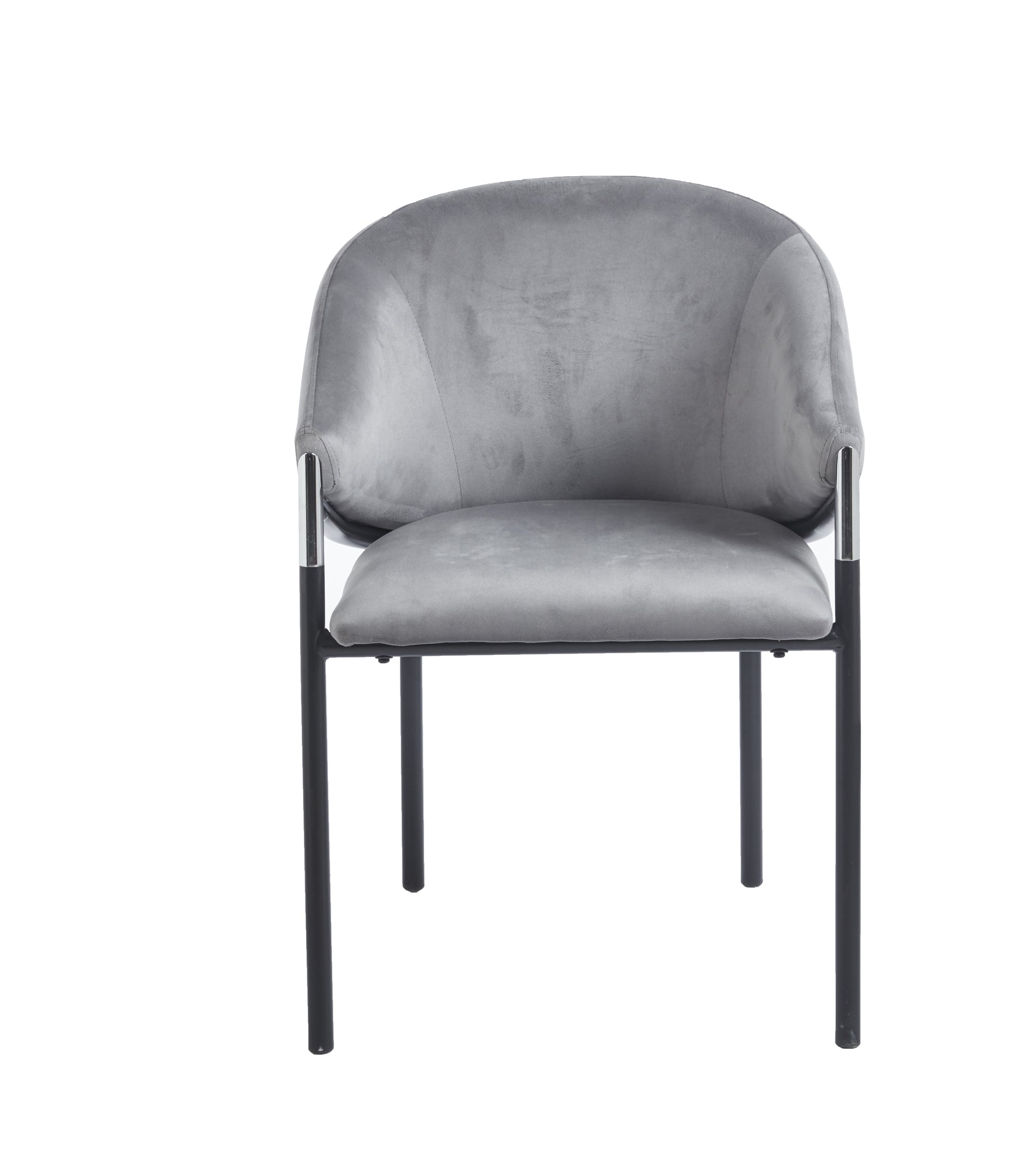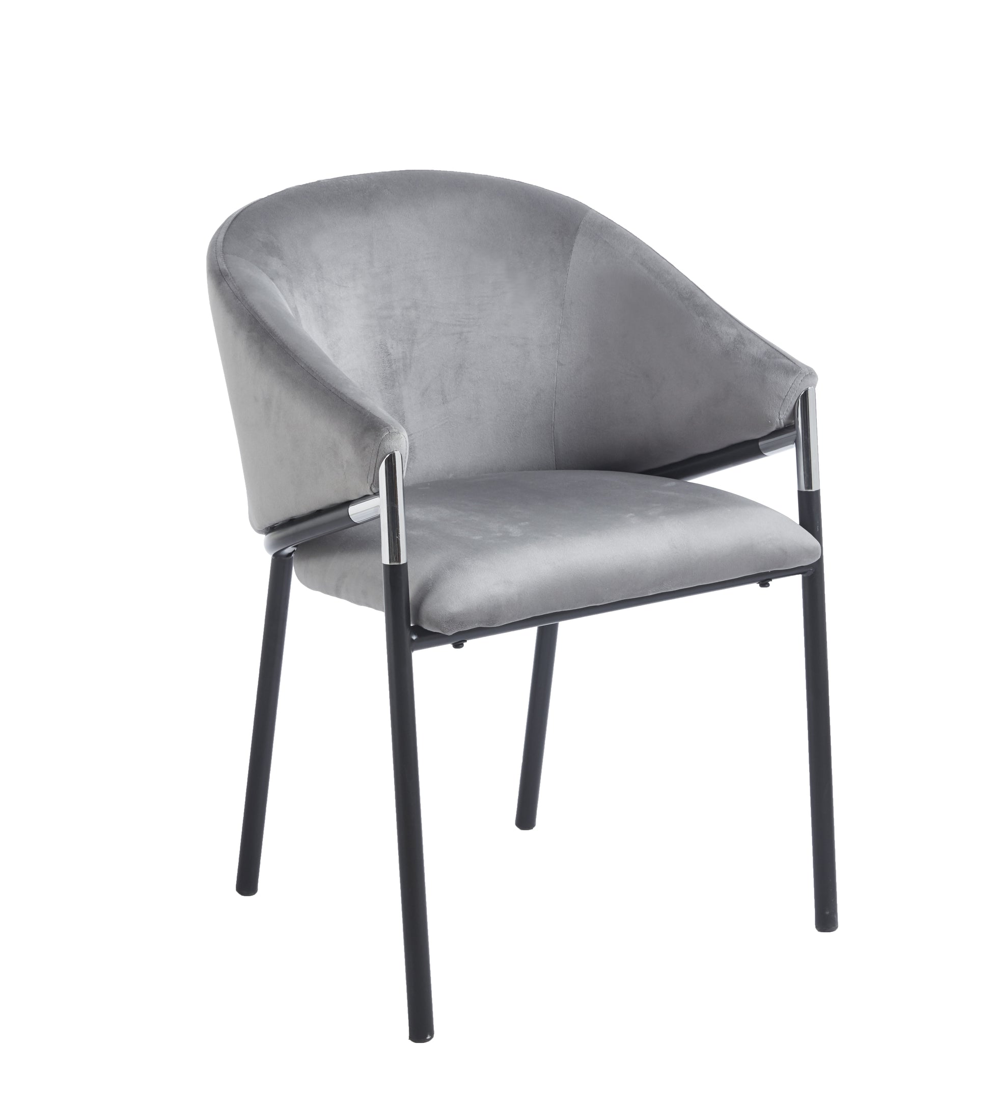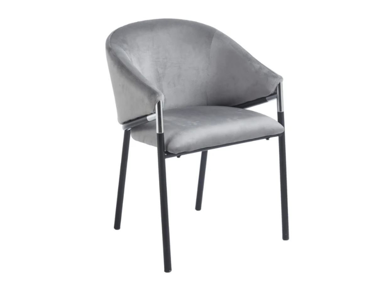 Der Colorado Stuhl kombiniert stilvolles Design mit praktischer Funktionalität. Das stabile schwarze Metallgestell mit silberfarbenen Details sorgt für Robustheit und eine moderne Optik, während der Bezug in Grau (HLR-24) zeitlose Eleganz in Ihre Wohnräume bringt.