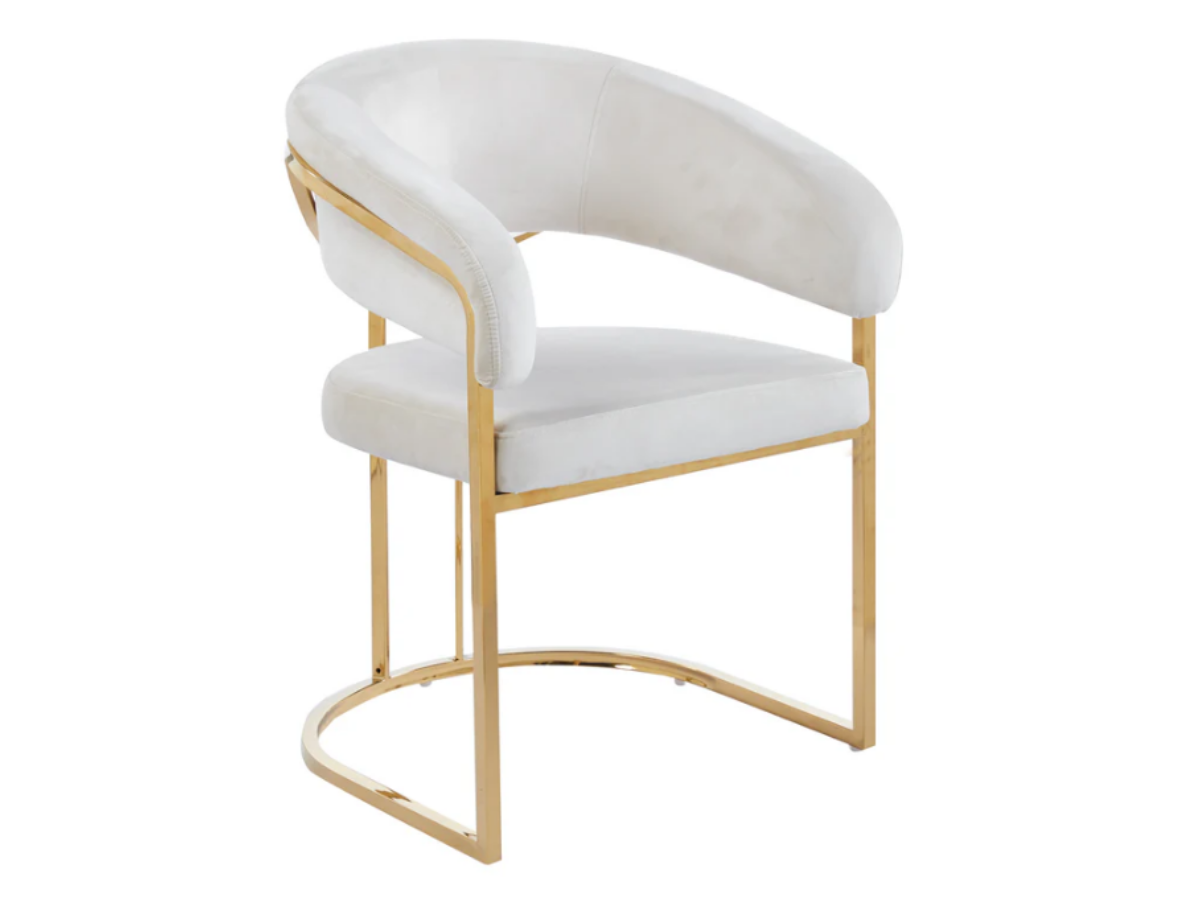 Der Dallas Stuhl ist die perfekte Kombination aus Komfort und Stil. Das speziell gefertigte rostfreie Metallgestell in Gold sorgt für Stabilität und edle Optik, während die sanft geschwungene Rückenlehne für ein elegantes Sitzgefühl sorgt.