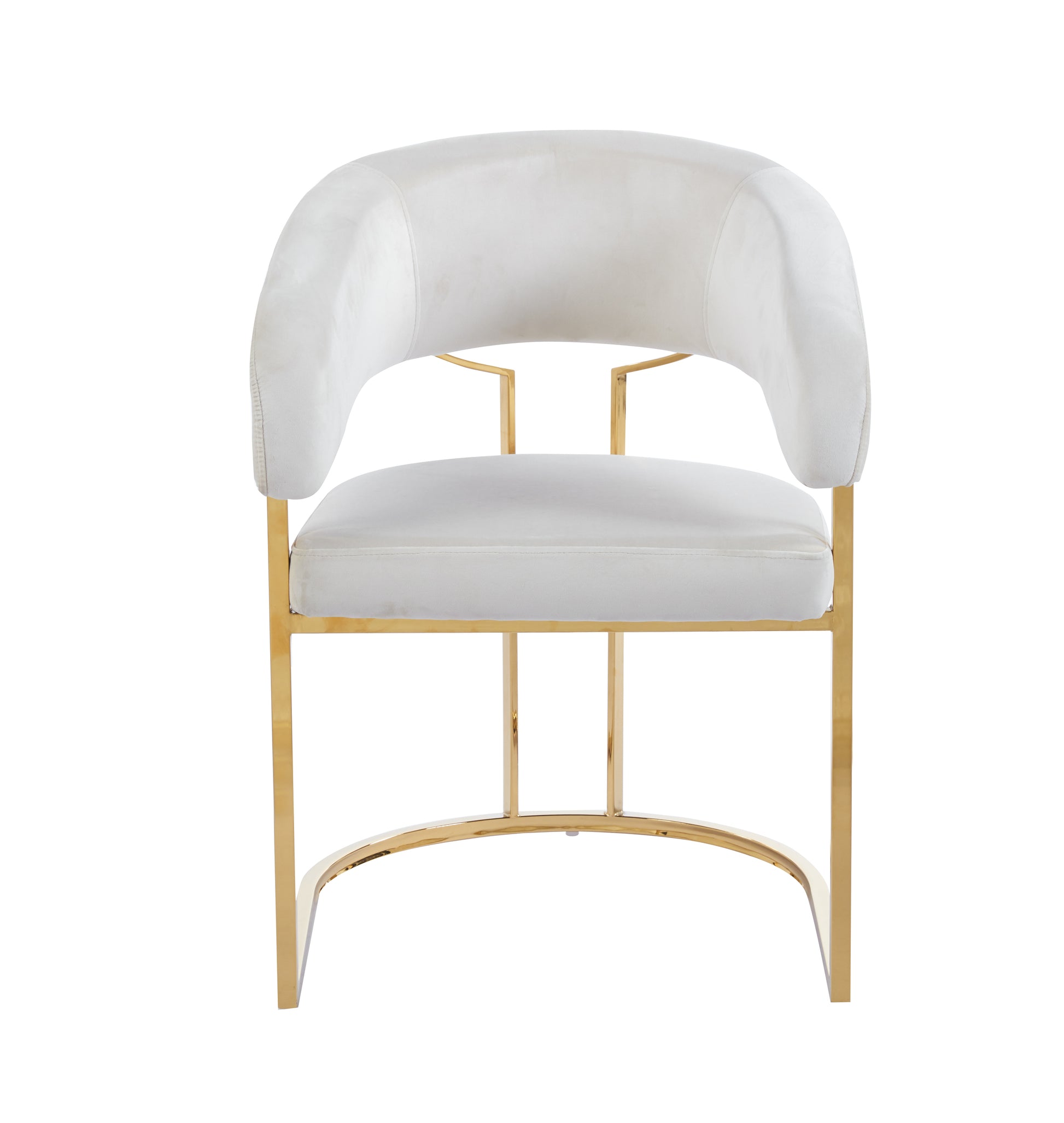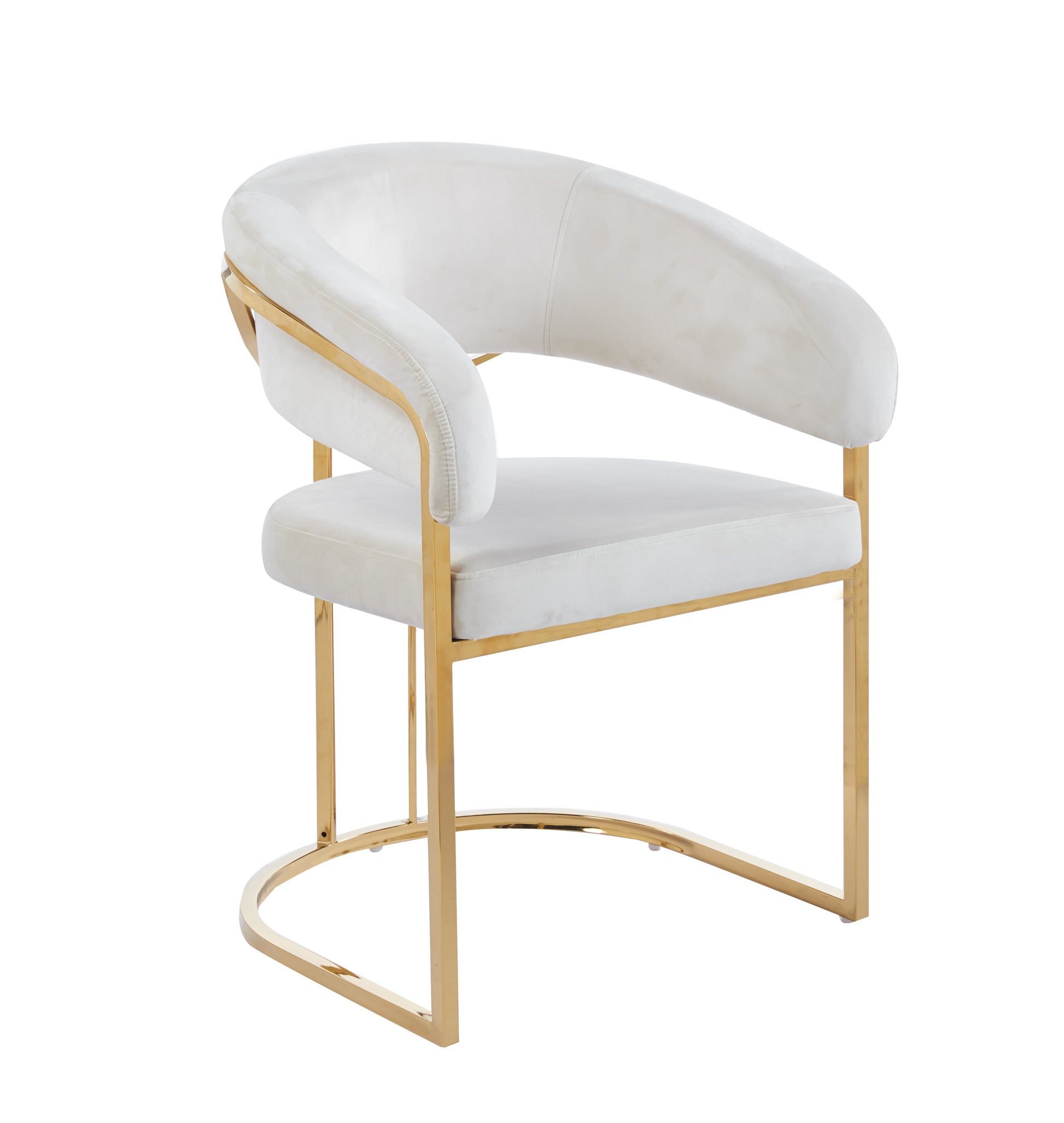 Der Bezug aus mikrofaserbeschichtetem Beige Velvet (#XDF5187-1) ist pflegeleicht, strapazierfähig und angenehm weich. Dank der bequemen Polsterung eignet sich der Stuhl ideal für Esszimmer, Wohnzimmer oder stilvolle Lounges.