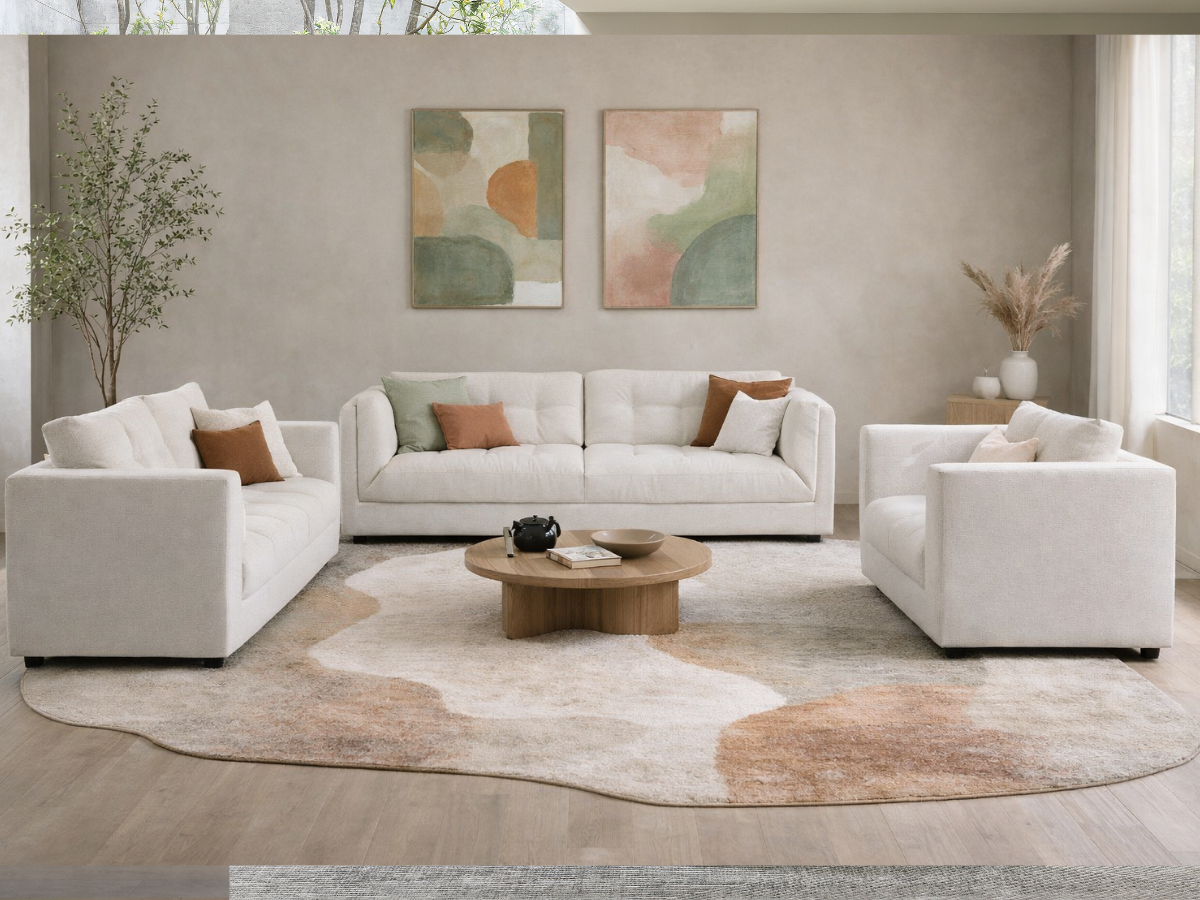 Die Eibar Couchgarnitur besteht aus einem 3-Sitzer + 3-Sitzer + 1 Sessel.
