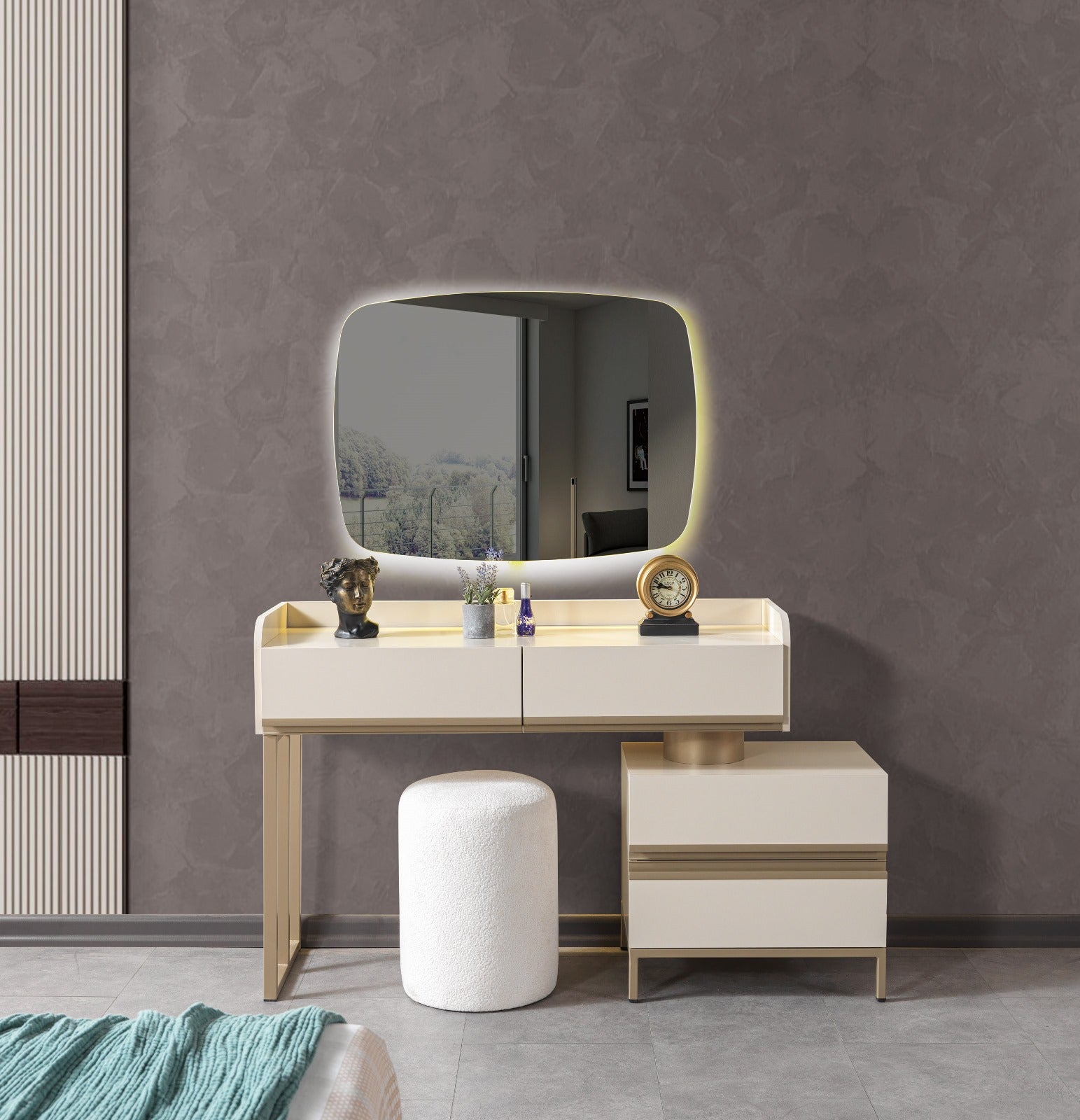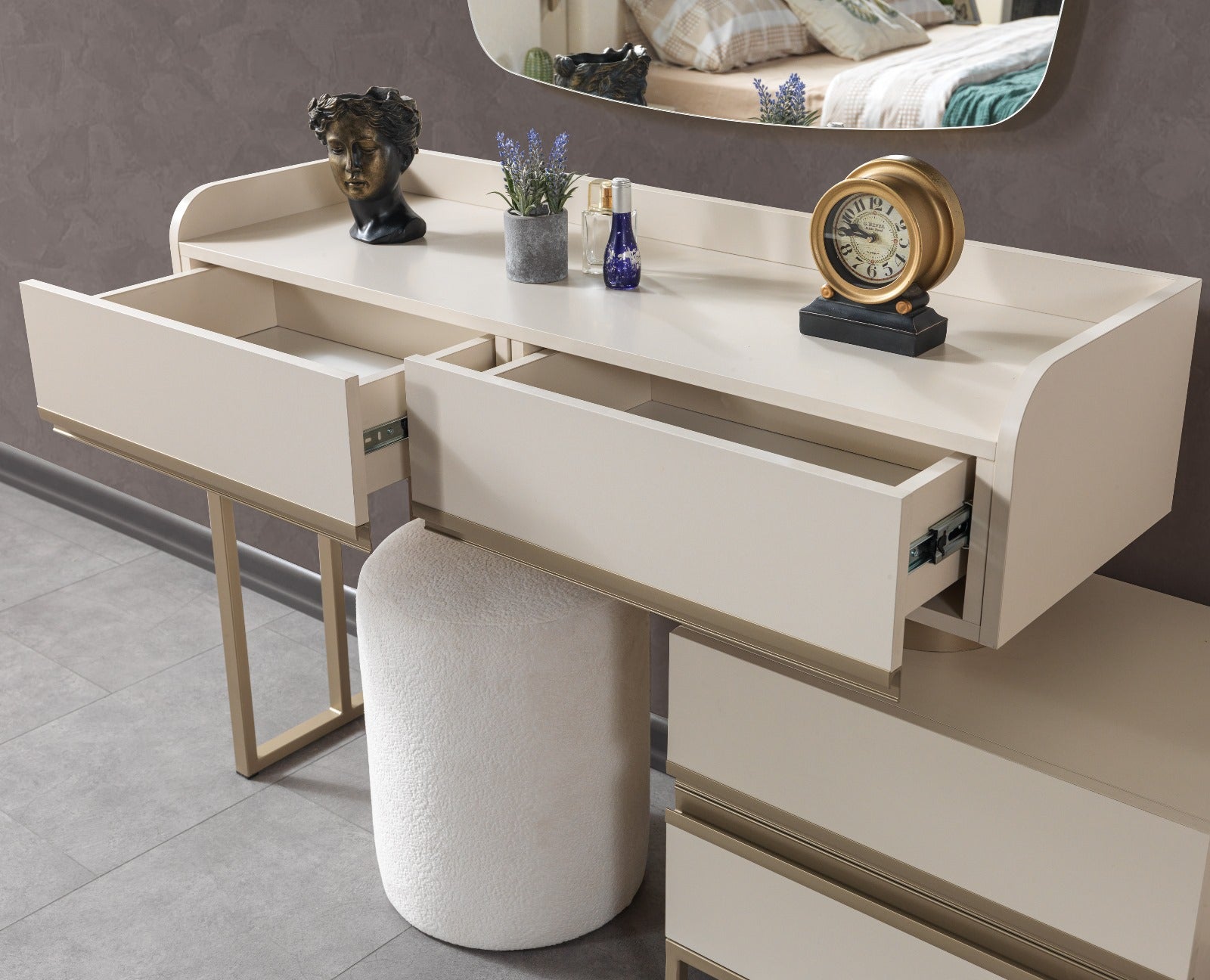 Nachttische & Schminktisch: MDF-Korpus, sanfte Farben, Metallgriffe