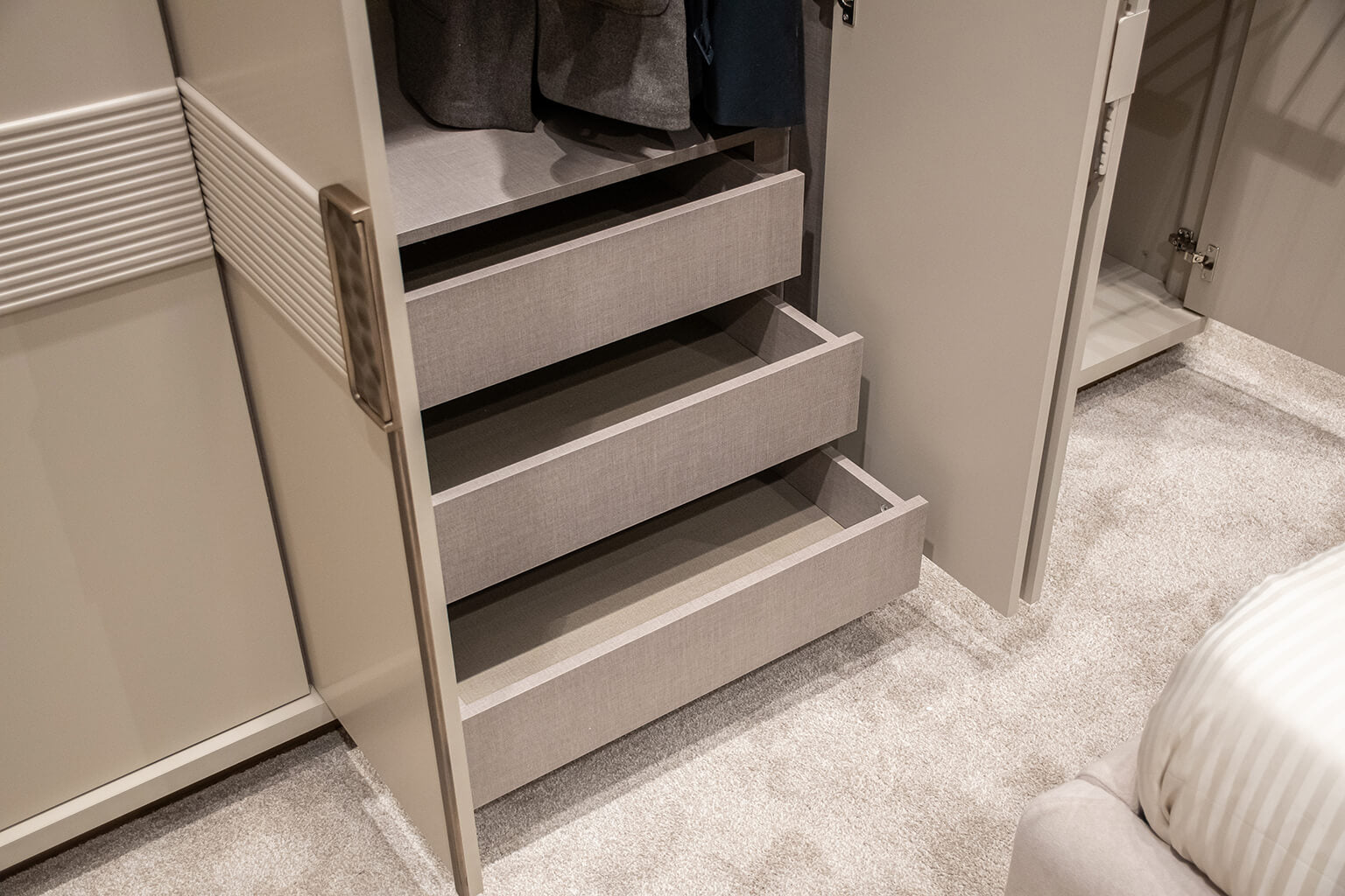 Kleiderschrank: Spiegel-Fronten, MDF-Elemente, hochwertige Innenaufteilung