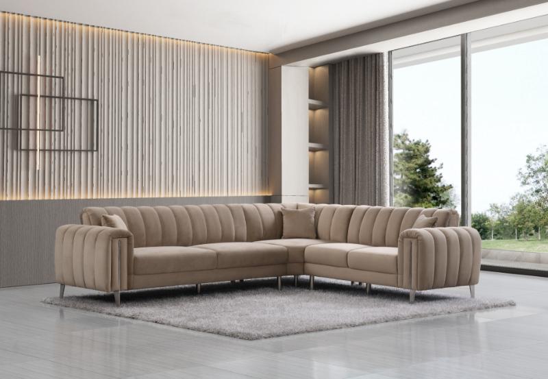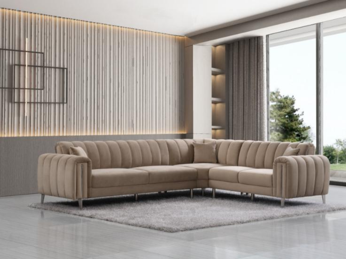 Der elegante Samtstoff in Farbe: XDF5187-42 (Light Grey) und die edlen Metallfüße in Gold oder Chrom verleihen Ihrem Wohnzimmer einen luxuriösen Charakter.