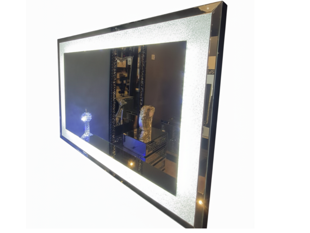 Der Wandspiegel GEL-80016 kombiniert modernes Design mit luxuriösen Details. Der umlaufende LED-Lichtrahmen sorgt für eine elegante, gleichmäßige Beleuchtung und schafft eine stilvolle Atmosphäre in jedem Raum. Die verspiegelte Oberfläche mit funkelndem Rand verleiht dem Spiegel einen glamourösen Look.