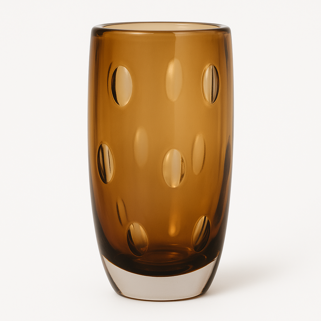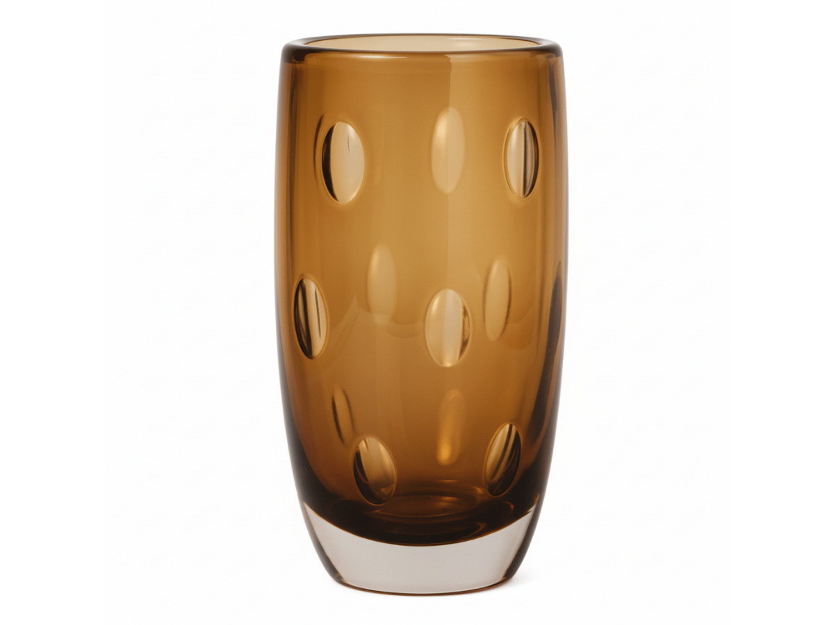 Dieses stilvolle Dekorationsobjekt aus braun getöntem Glas verleiht jedem Raum eine warme und elegante Atmosphäre. Die eingearbeiteten, ovalen Luftblasen sorgen für einen modernen, handgefertigten Look und machen jedes Stück zu einem Unikat.