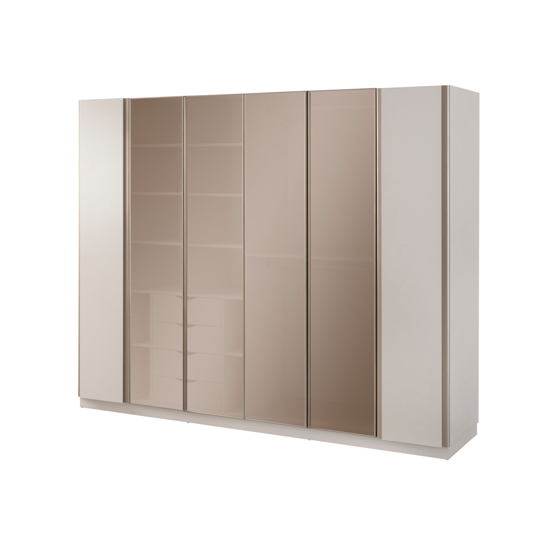 Kleiderschrank: MDF-Fronten mit CNC-Mustern und gehärteten Glasflächen