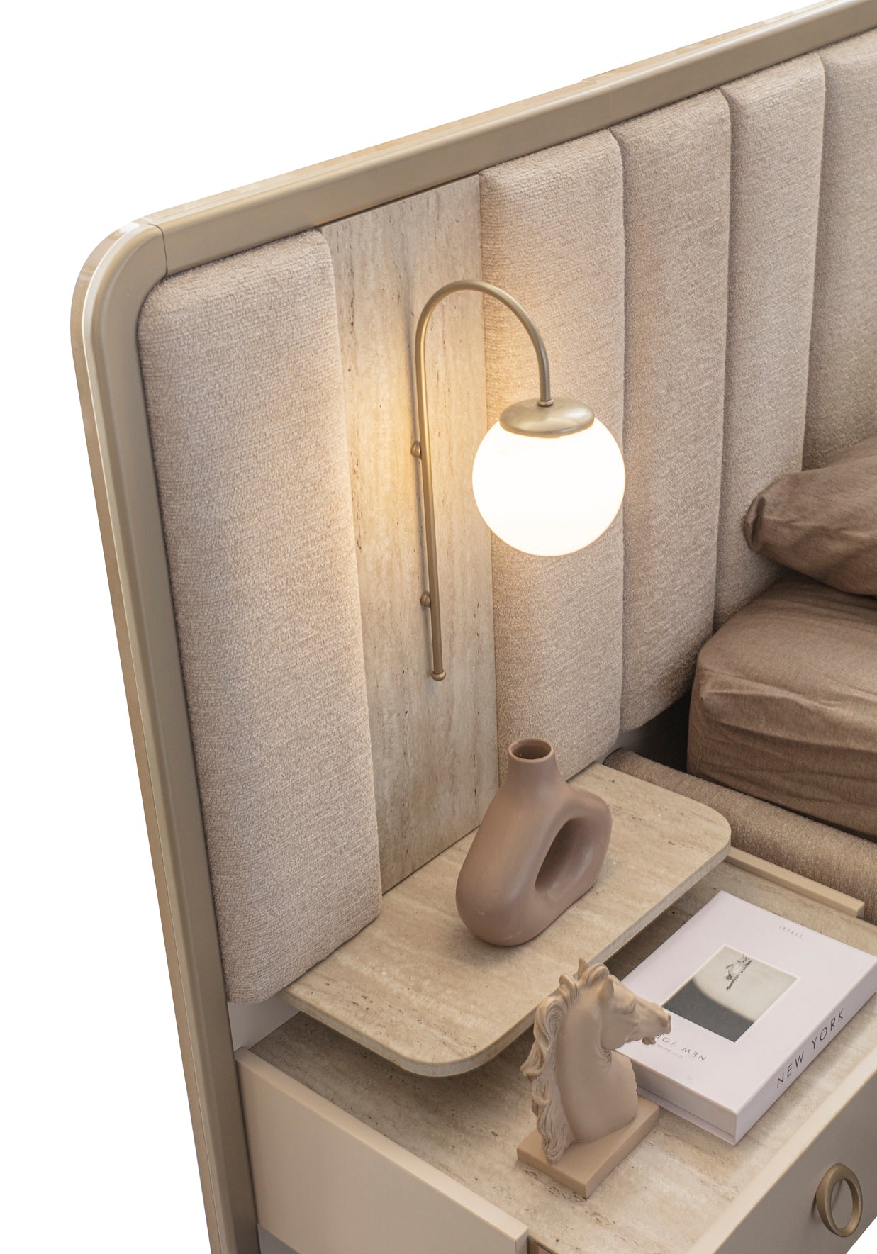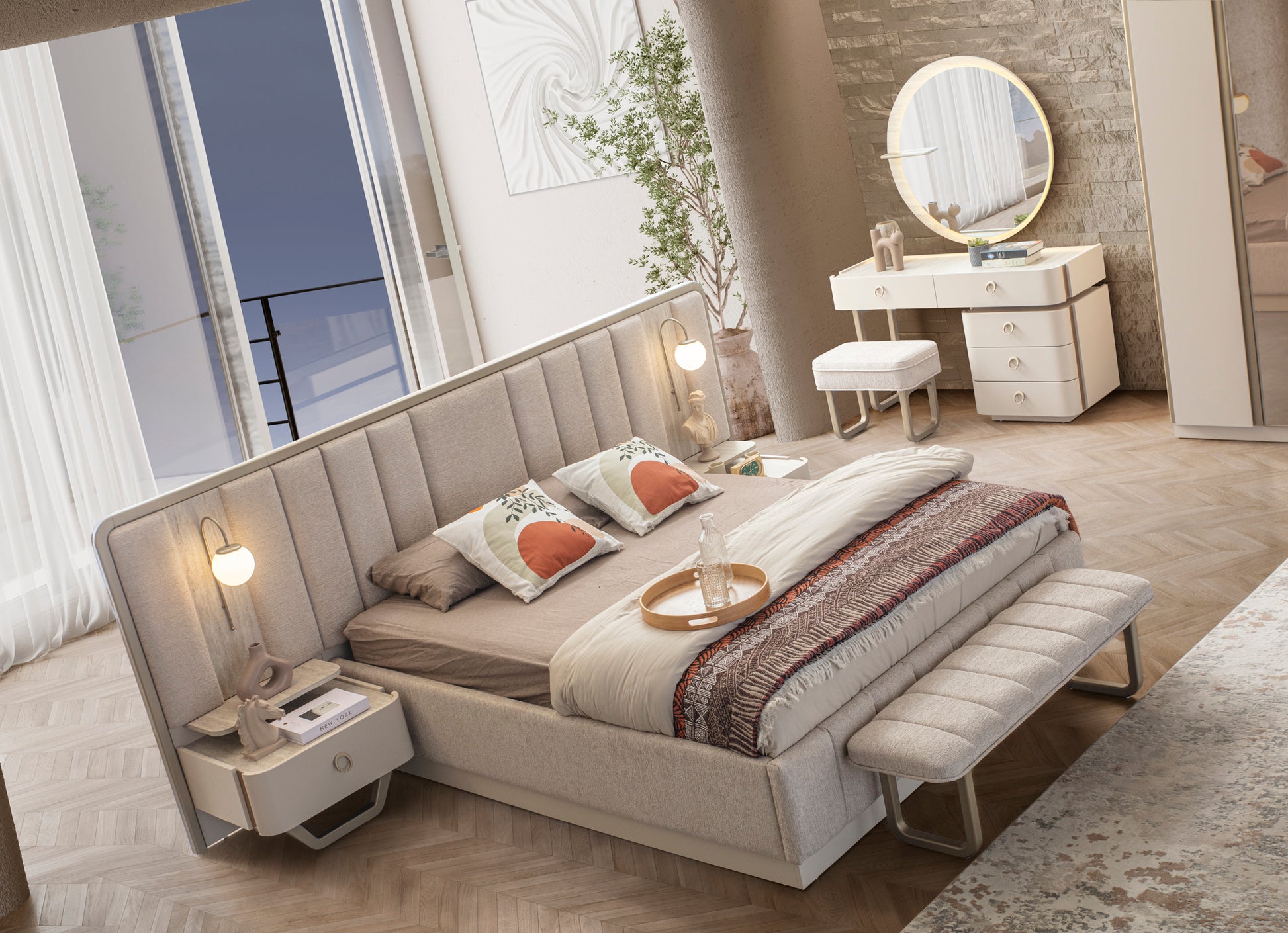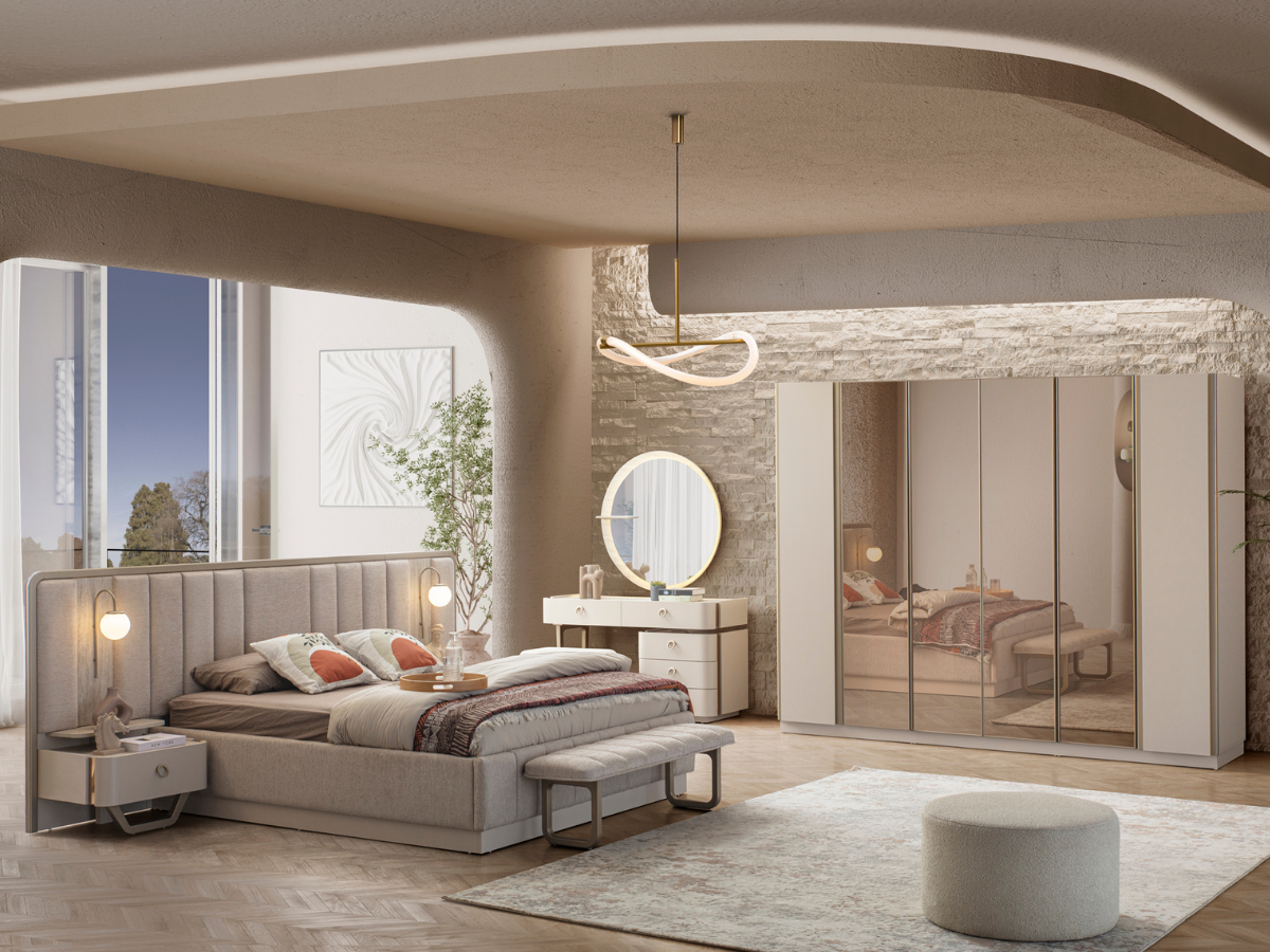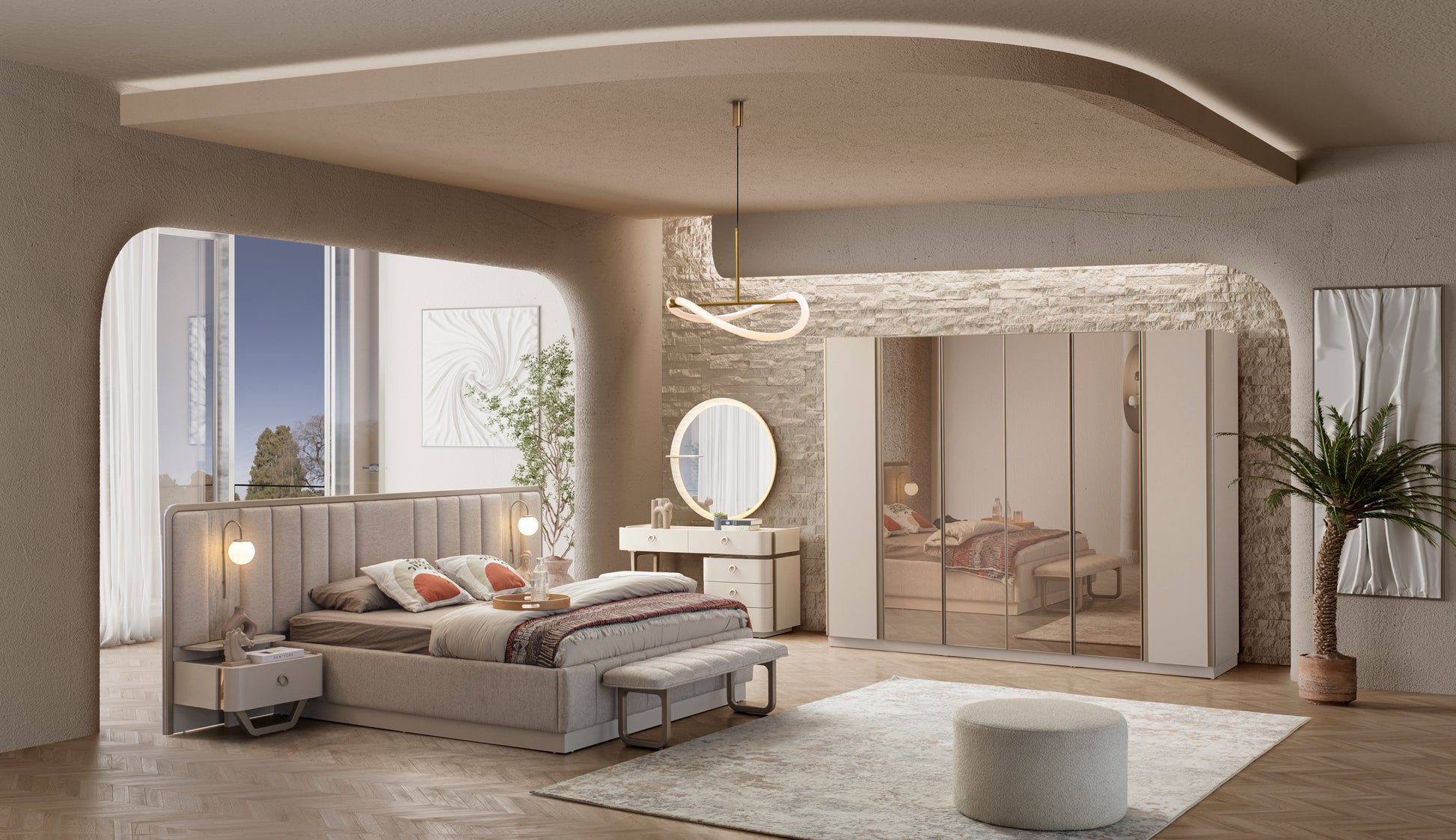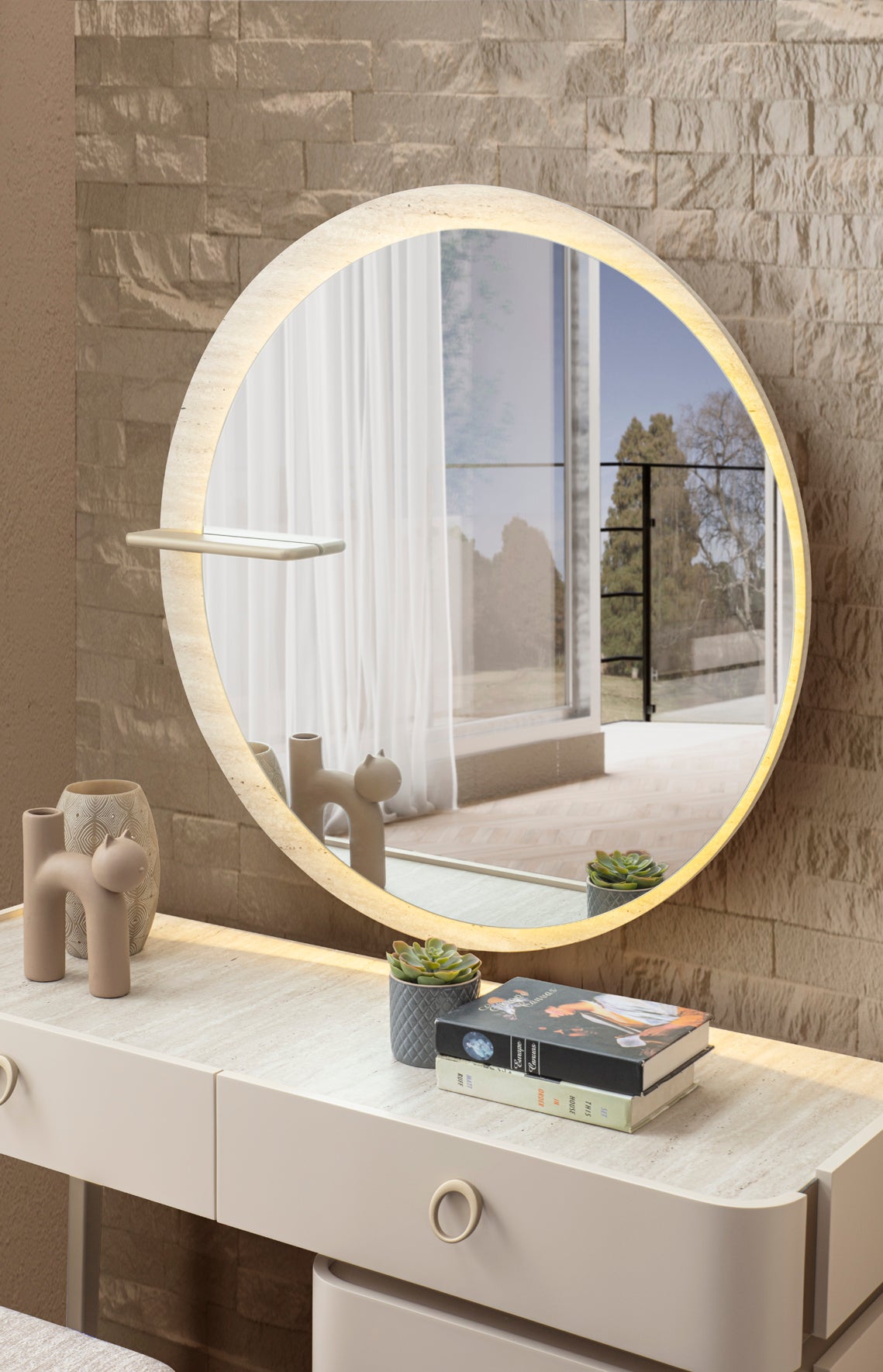Das Isabella Schlafzimmer Set vereint zeitlose Eleganz mit natürlichen Travertin-Akzenten. Die hochwertigen Materialien, das beleuchtete Spiegel-Element und das praktische Bett mit Bettkasten machen dieses Set zur perfekten Kombination aus Luxus und Funktionalität.