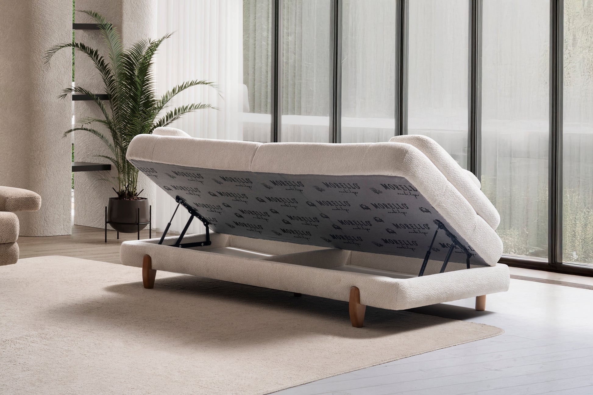 Dieses Modell verleiht Ihrem Wohnraum mit seiner eleganten Crema-Farbe und der weichen Stoffstruktur eine moderne und stilvolle Atmosphäre. Neben dem hochwertigen Design bietet es auch praktische Funktionen: