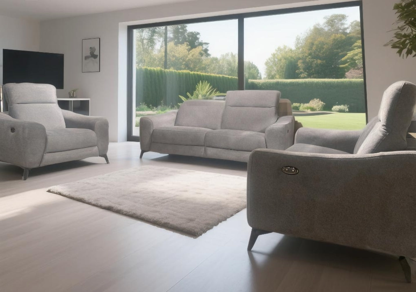 Entdecken Sie unser modernes elektrisches Sofa-Set mit innovativem Relax-System – bestehend aus 3-Sitzer + 2-Sitzer + 1-Sessel.