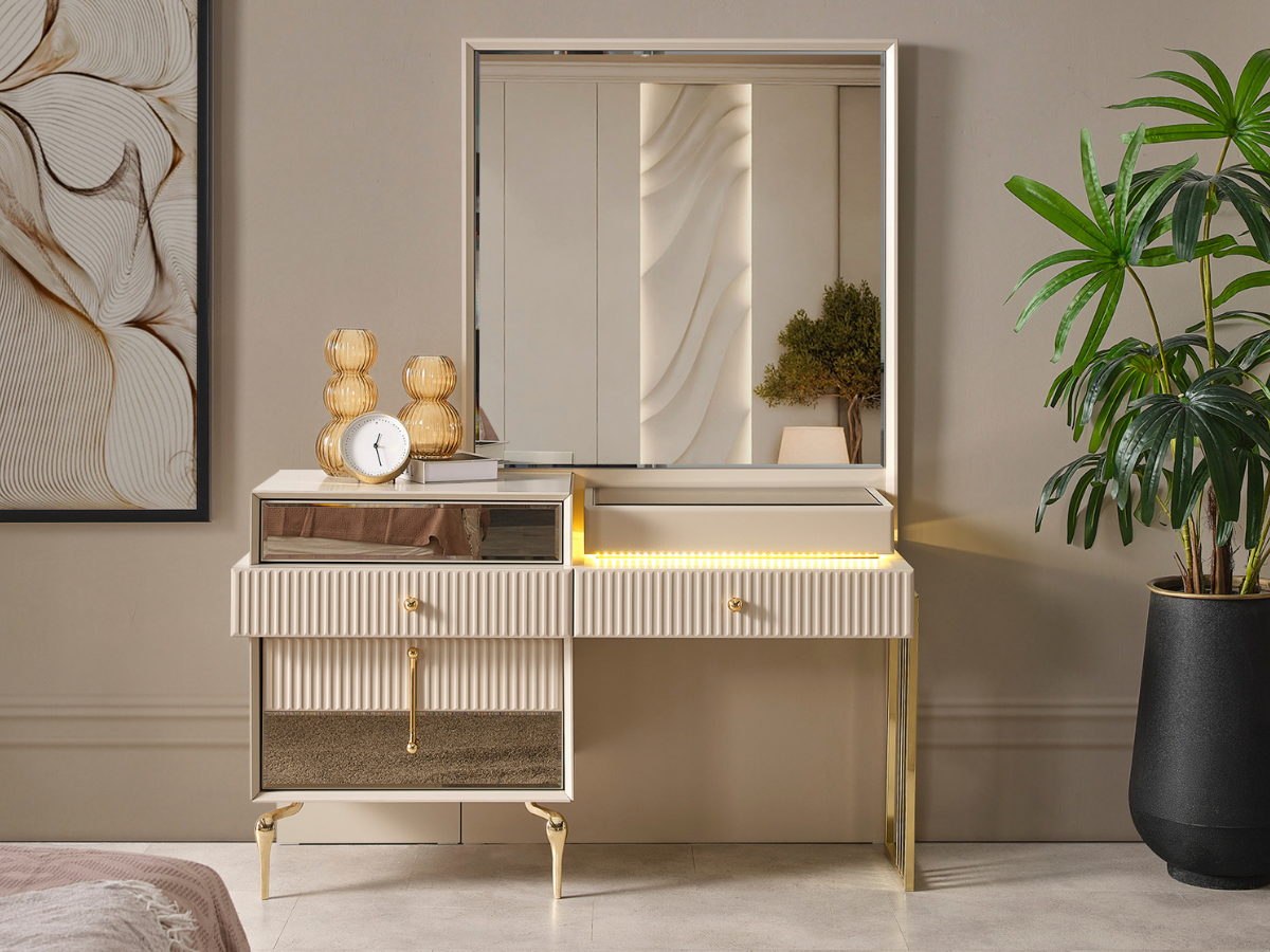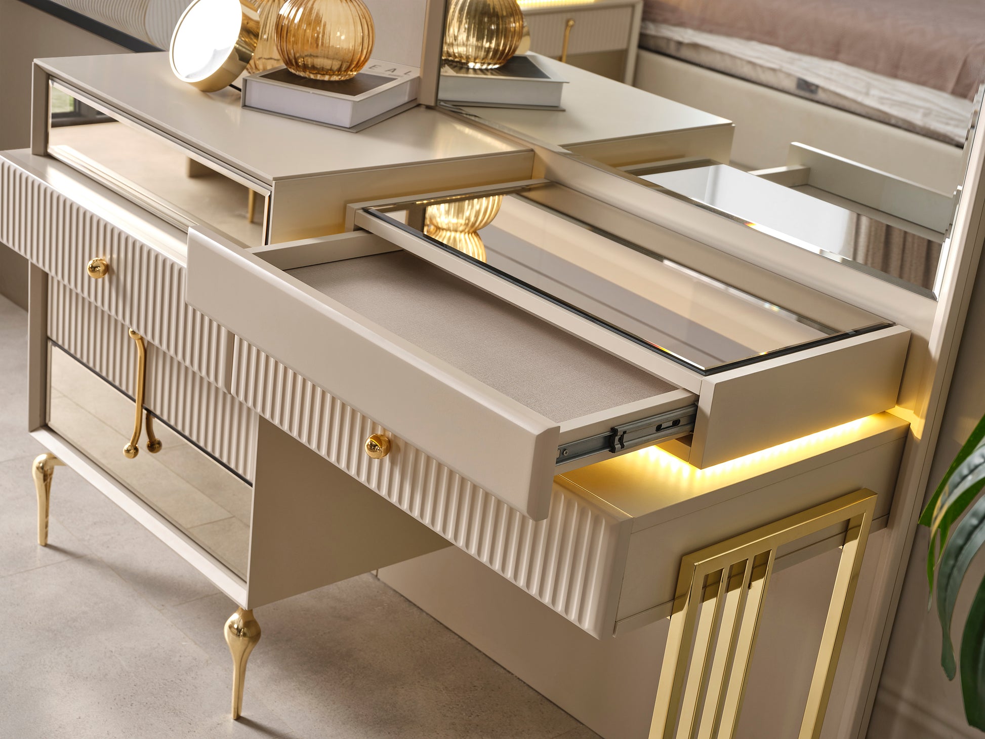 Die Lexus Creme Schminkkommode ist mehr als nur ein Schminktisch – sie ist ein elegantes Statement für jedes Schlafzimmer.