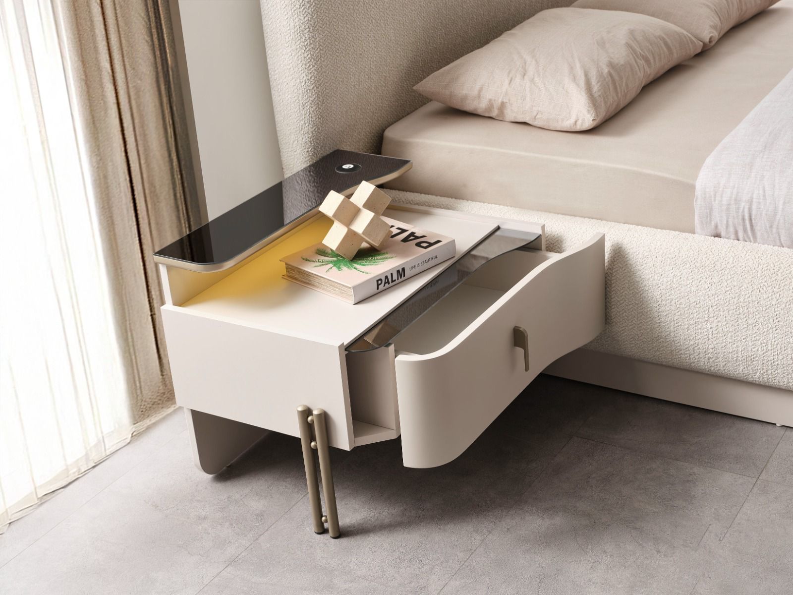 Der Luna Nachttisch rundet Ihr Schlafzimmer stilvoll ab und verbindet modernes Design mit praktischer Funktionalität.