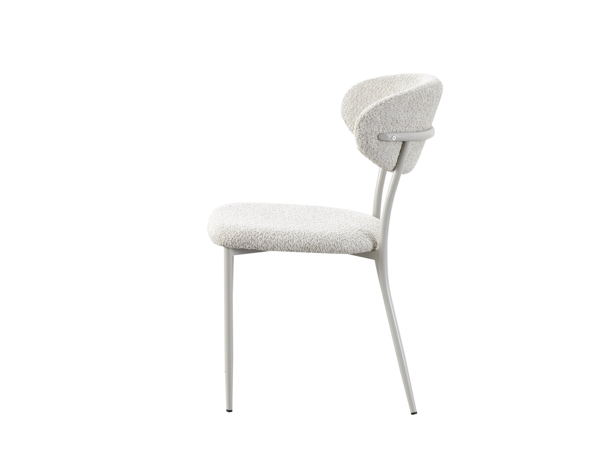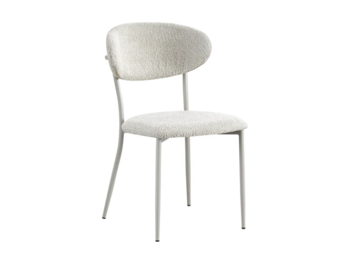 Der Merida Stuhl bringt mit seiner feinen Silhouette und dem minimalistischen Look Leichtigkeit in jeden Raum. Die zierlichen Metallbeine sorgen für einen modernen Stil, während der weiche Bouclé-Stoff höchsten Sitzkomfort bietet. Die ergonomisch geformte Rückenlehne unterstützt eine entspannte Sitzhaltung – perfekt für lange Abende am Tisch oder konzentriertes Arbeiten im Home Office.