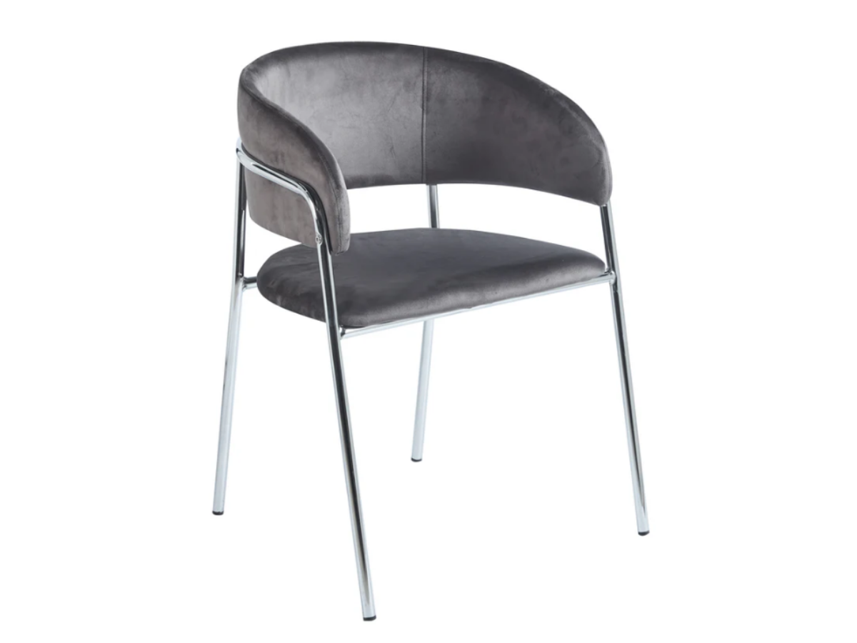 Der Miami Stuhl kombiniert stilvolles Design mit funktionaler Qualität. Das stabile Metallgestell in Chrom verleiht dem Stuhl eine moderne Note und sorgt für Langlebigkeit, während der Bezug in Grau eine zeitlose Eleganz in Ihre Wohnräume bringt.