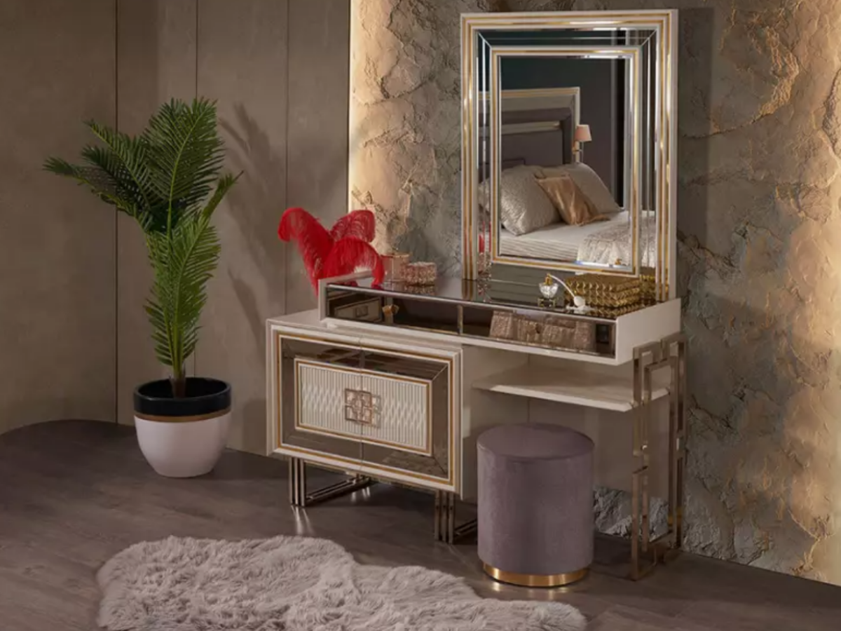 Die Milano Premium Schminkkommode mit Spiegel kombiniert luxuriöses Design und praktische Funktionalität.