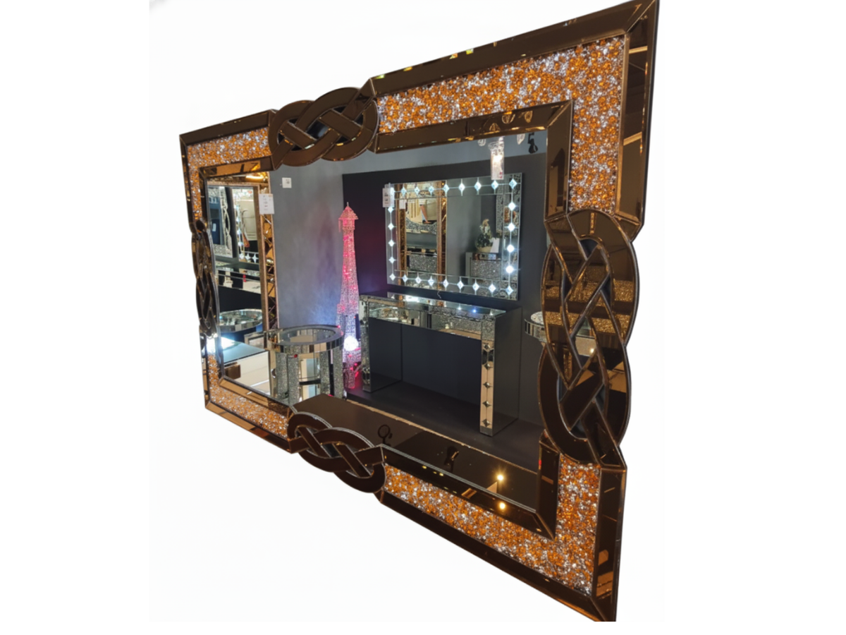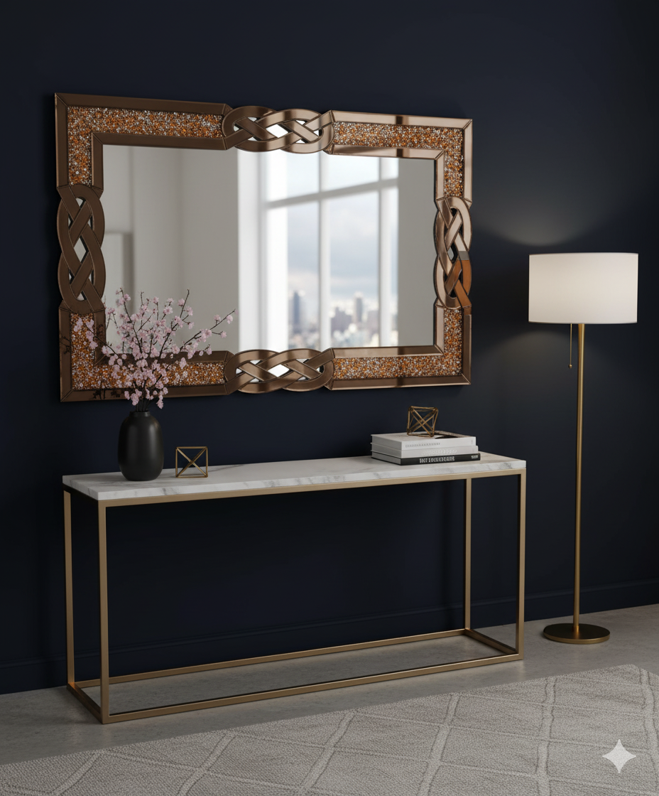 Ein stilvoller Wandspiegel, der Eleganz, Wärme und Luxus vereint – perfekt für moderne Wohnräume mit Charakter.
