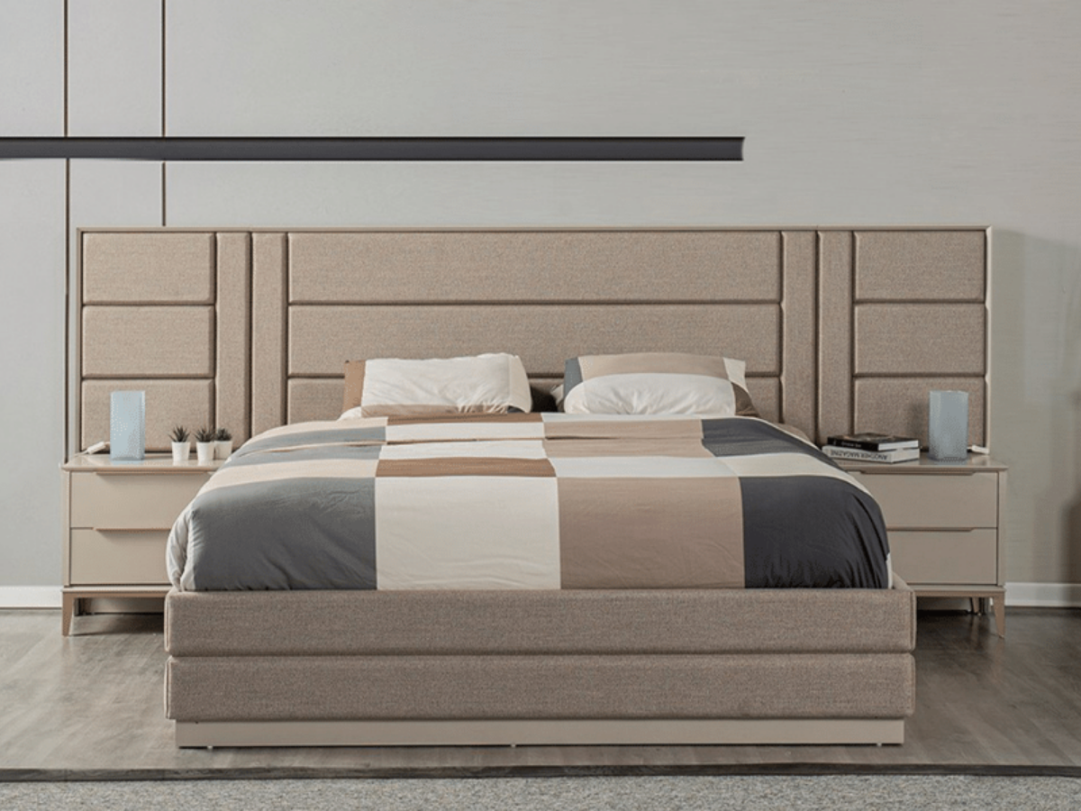 | Kopfteil | 234 × 10 × 130 cm (B × T × H) | Gepolstert mit elegantem Linienmuster |