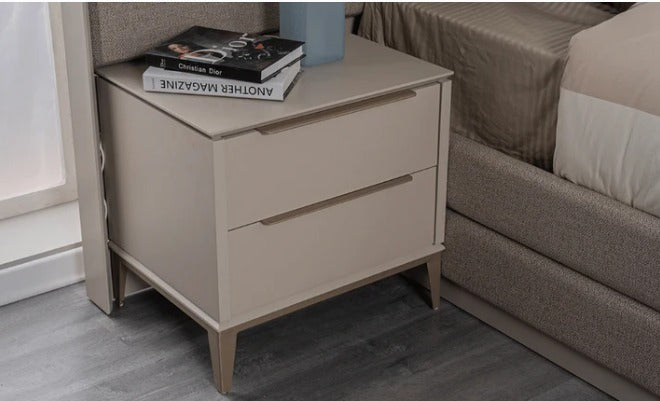Dank ihres modernen Designs lässt sich der Nachttisch perfekt mit dem Nepal Bett und anderen Möbelstücken der Serie kombinieren.