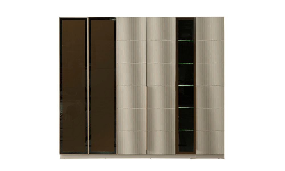 Großer Schwebetürenschrank mit Spiegel- und Lichtakzenten