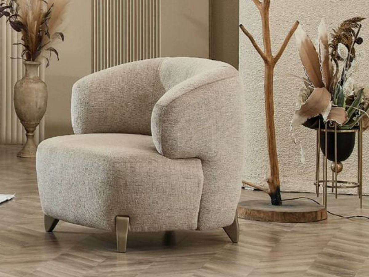 Der Nova Sessel vereint modernes Design mit hohem Sitzkomfort. Mit seinen abgerundeten Linien und dem hochwertigen Strukturstoff bringt er eine stilvolle und zugleich gemütliche Note in Ihr Zuhause. Die stabilen Bucheholzfüße in Mat Gold (weitere Farboptionen auf Wunsch erhältlich) runden das elegante Gesamtbild ab.