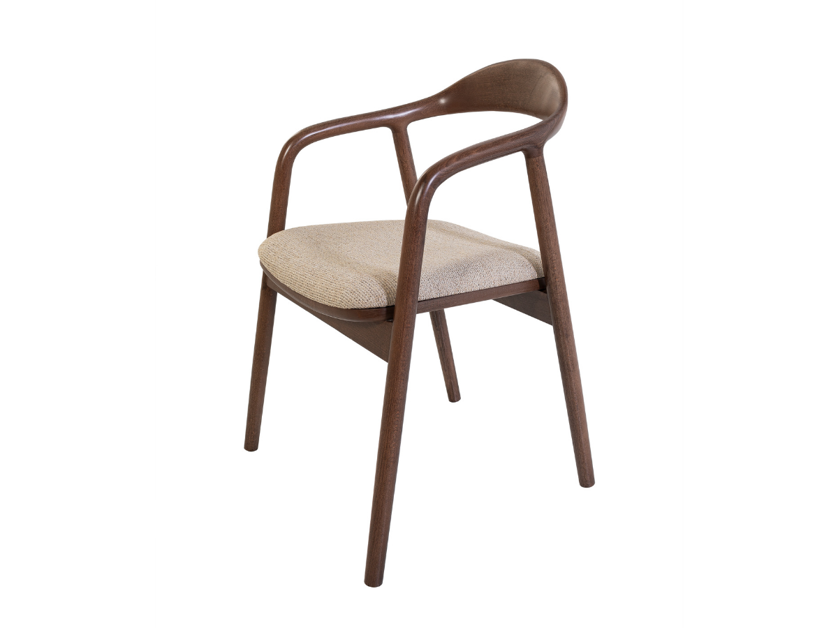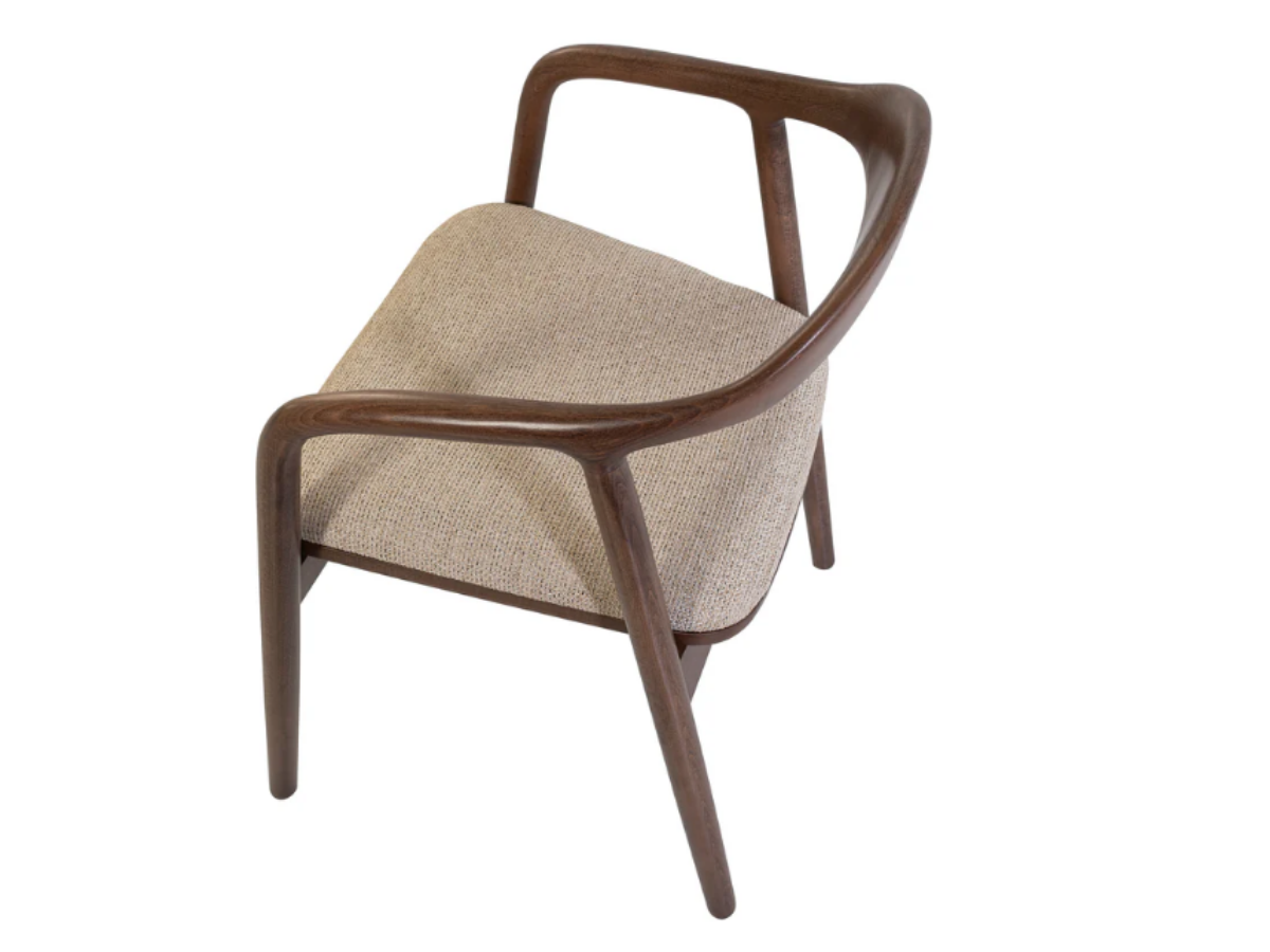 Der Oscar Stuhl besticht durch seine geschwungenen Armlehnen und das elegante Massivholzgestell in American Walnut. Mit seinem minimalistischen, aber markanten Design fügt er sich perfekt in moderne wie klassische Einrichtungen ein.