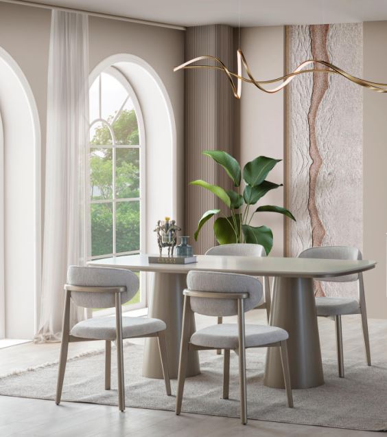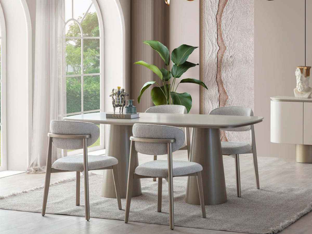 Der Pablo Esstisch ist die ideale Wahl für alle, die minimalistisches Design mit wohnlicher Wärme verbinden möchten. Mit seinen abgerundeten Ecken, der weichen Farbgebung und dem stabilen Doppel-Sockelgestell ist dieser Tisch nicht nur funktional, sondern auch ein elegantes Statement in Ihrem Esszimmer.