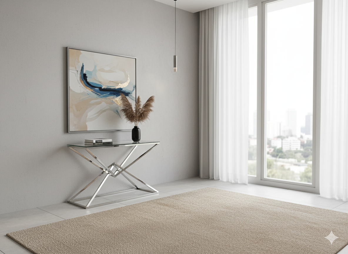 Eine elegante Konsole, die Funktionalität und Design perfekt kombiniert – ideal für ein modernes, helles Wohnambiente.