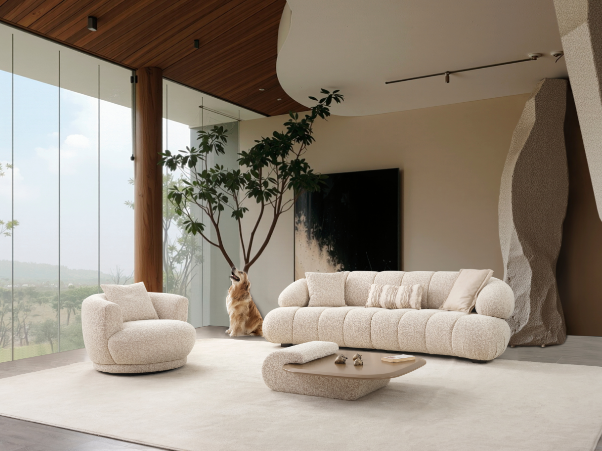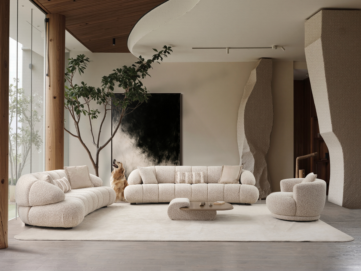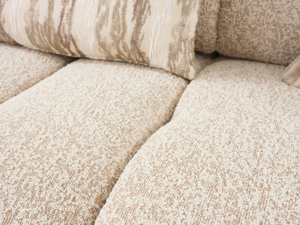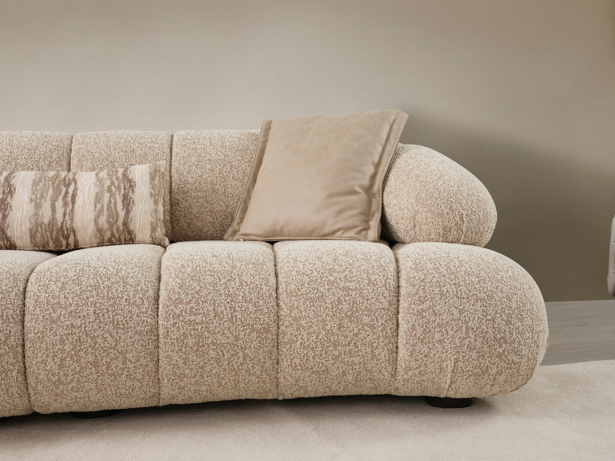 Die Phuket Couchgarnitur überzeugt mit ihrem modernen, organischen Design und dem hochwertigen, strukturierten Stoff Flament 04.