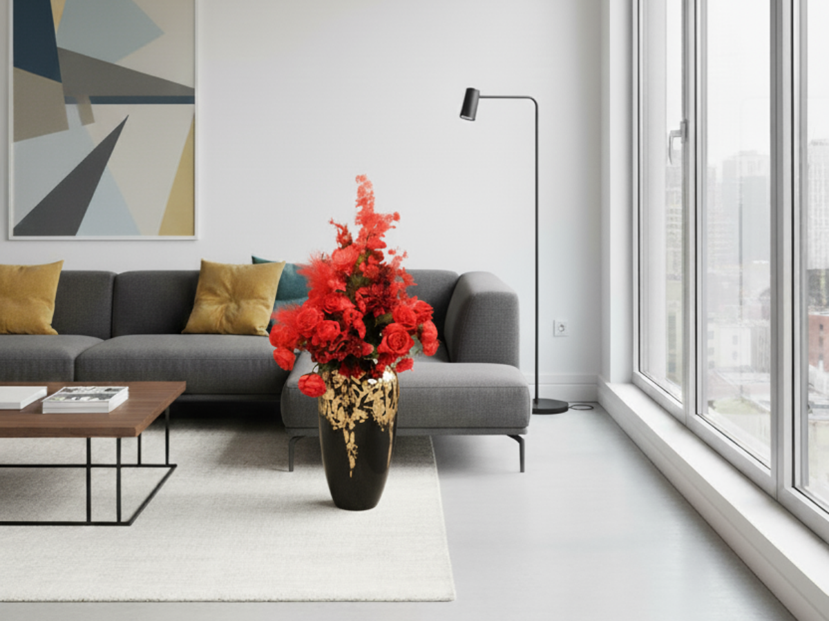 Große Vase – Rot/Schwarz/Gold