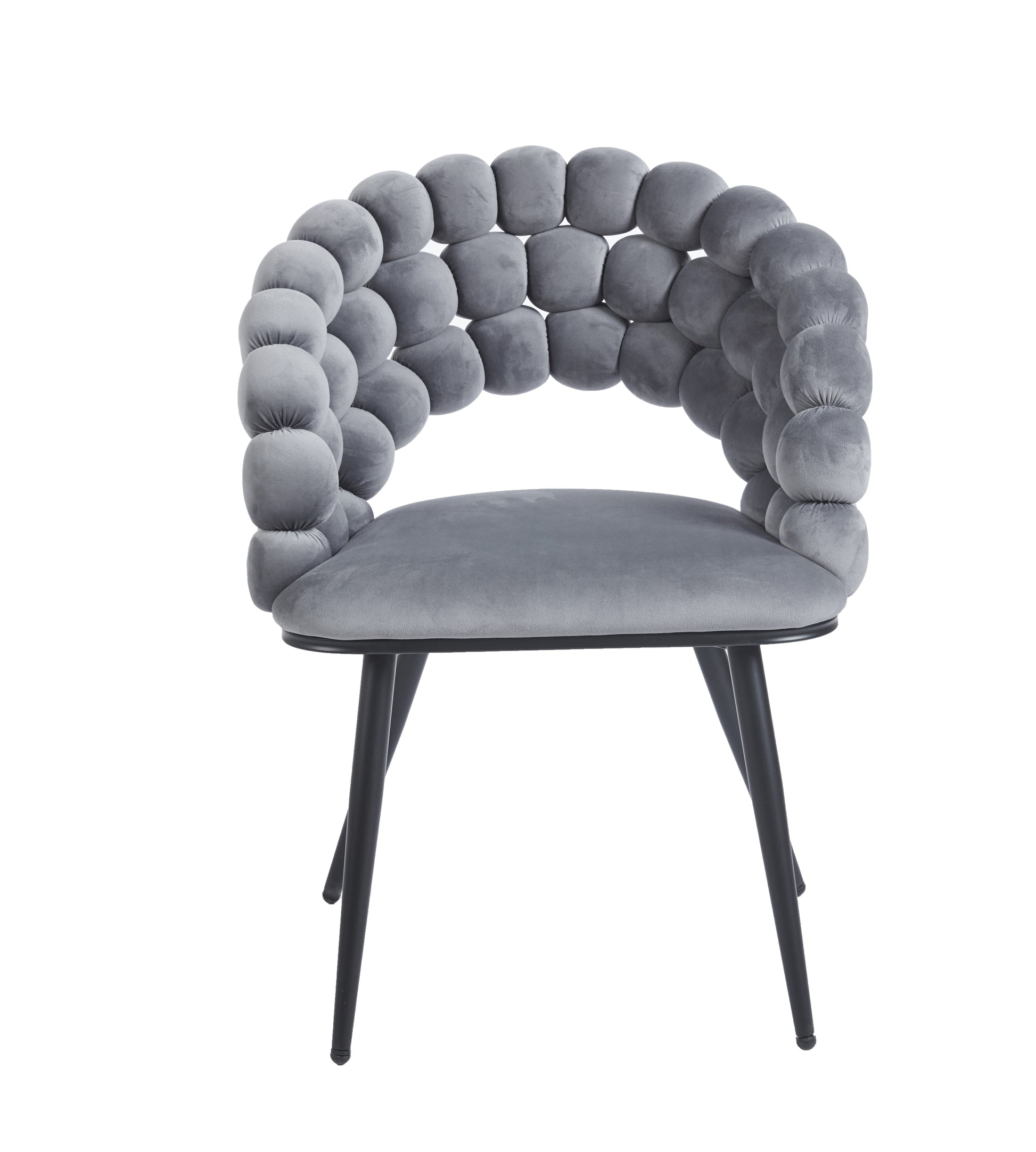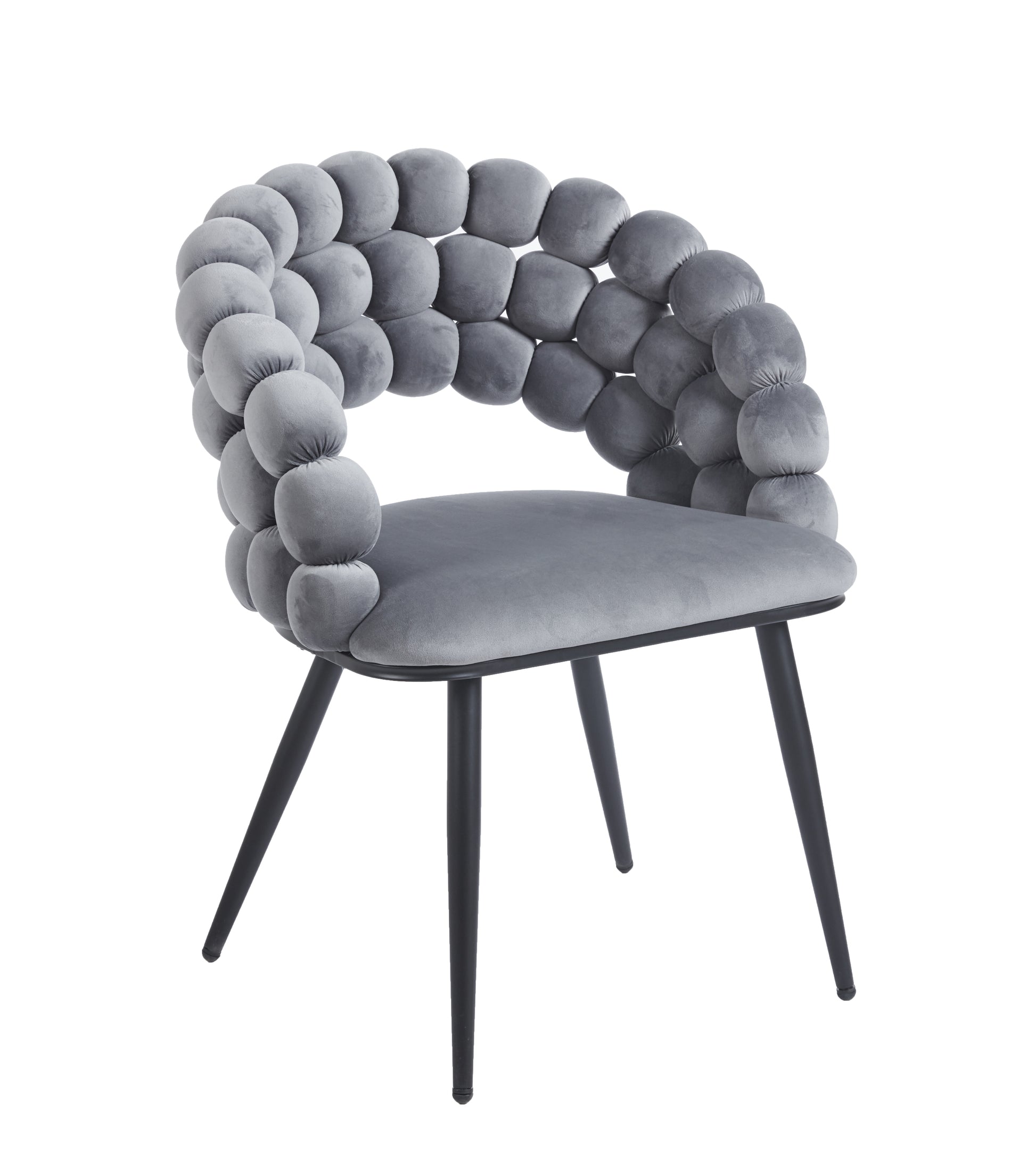 Das stabile schwarze Metallgestell sorgt für Langlebigkeit und Robustheit, während die pflegeleichten Stoffbezüge eine einfache Reinigung ermöglichen. Ideal für Esszimmer, Wohnzimmer oder stilvolle Lounges.