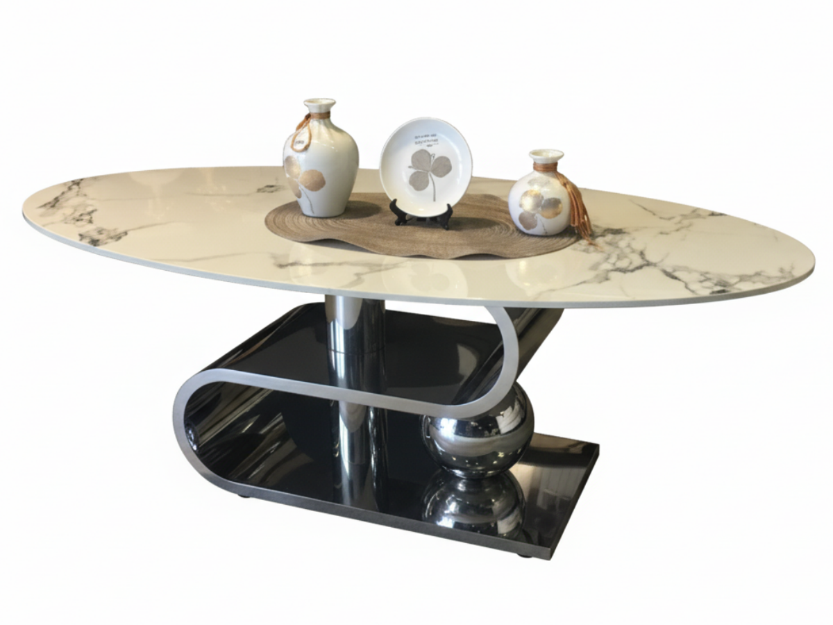 Der Scarlett Couchtisch ist nicht nur funktional, sondern auch ein ästhetisches Highlight. Mit seiner Kombination aus weißem Marmor und goldenen Akzenten setzt er einen eleganten Akzent in Ihrem Wohnzimmer und schafft einen stilvollen Mittelpunkt für gesellige Abende.