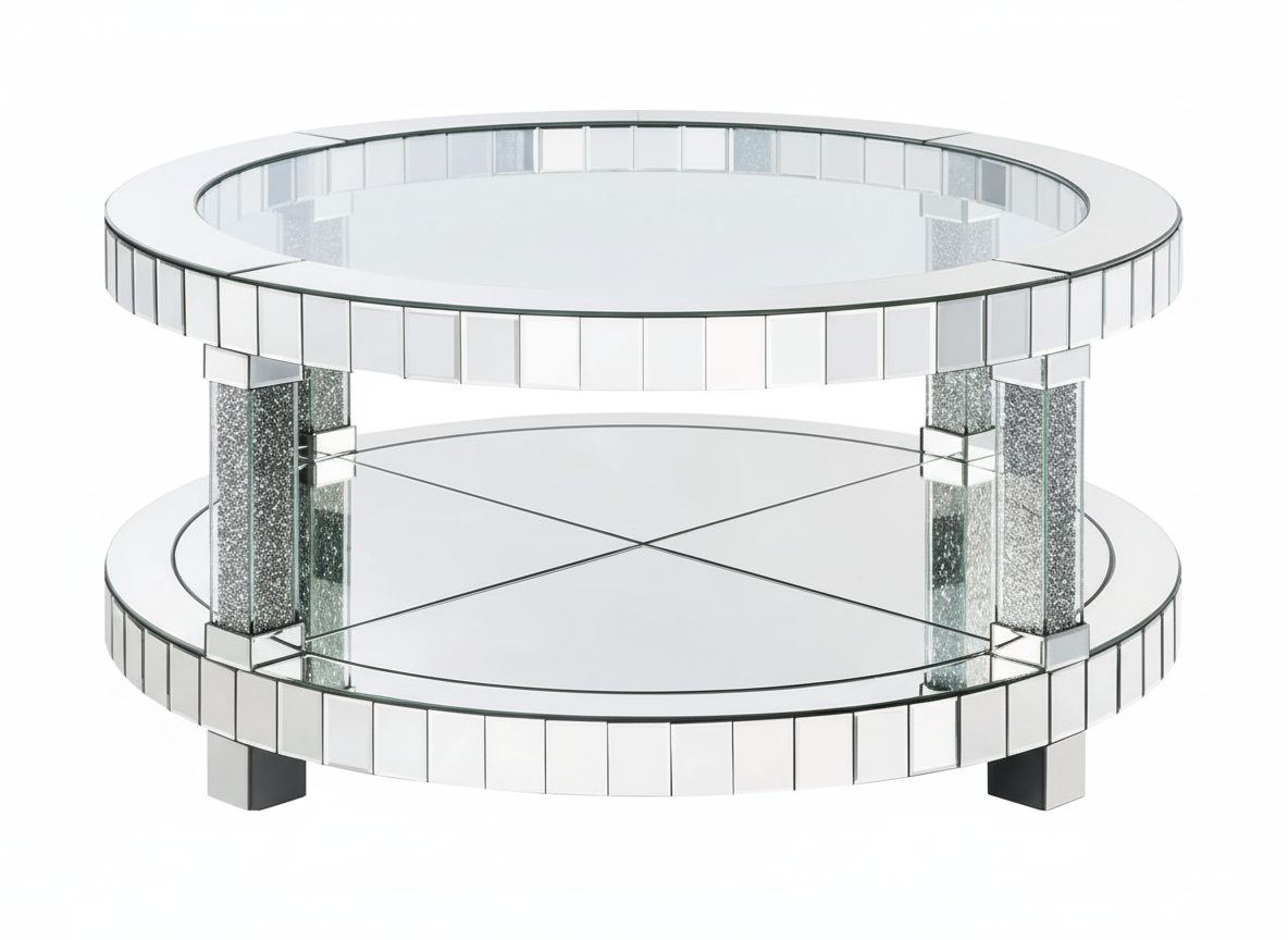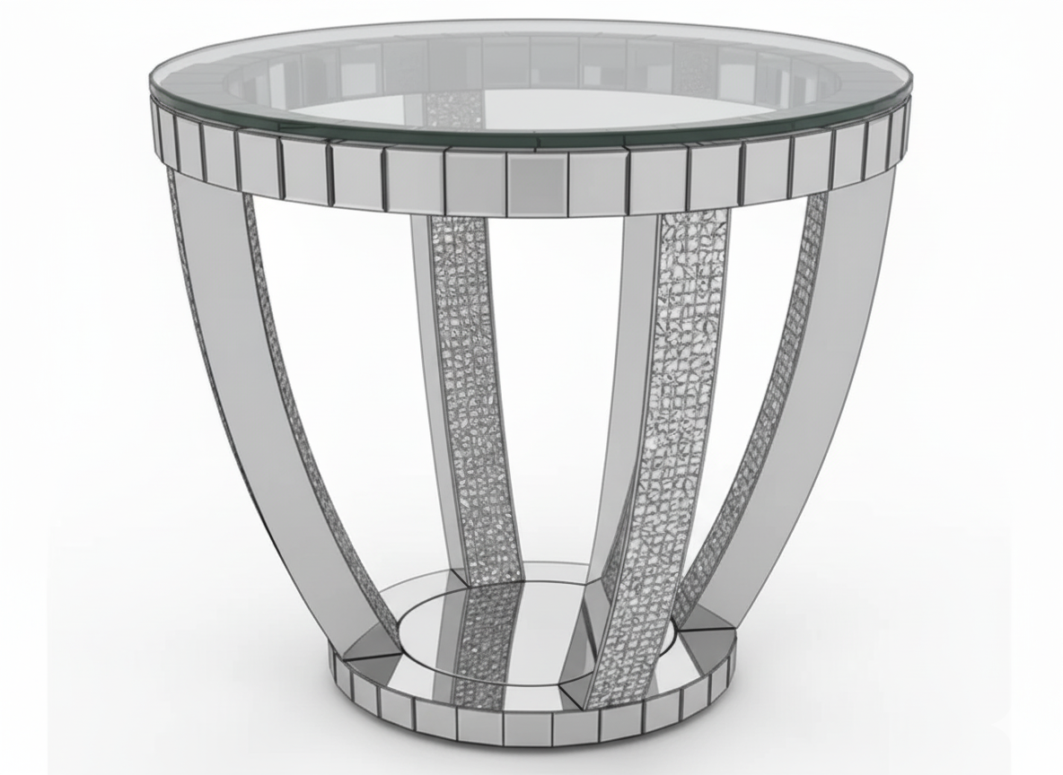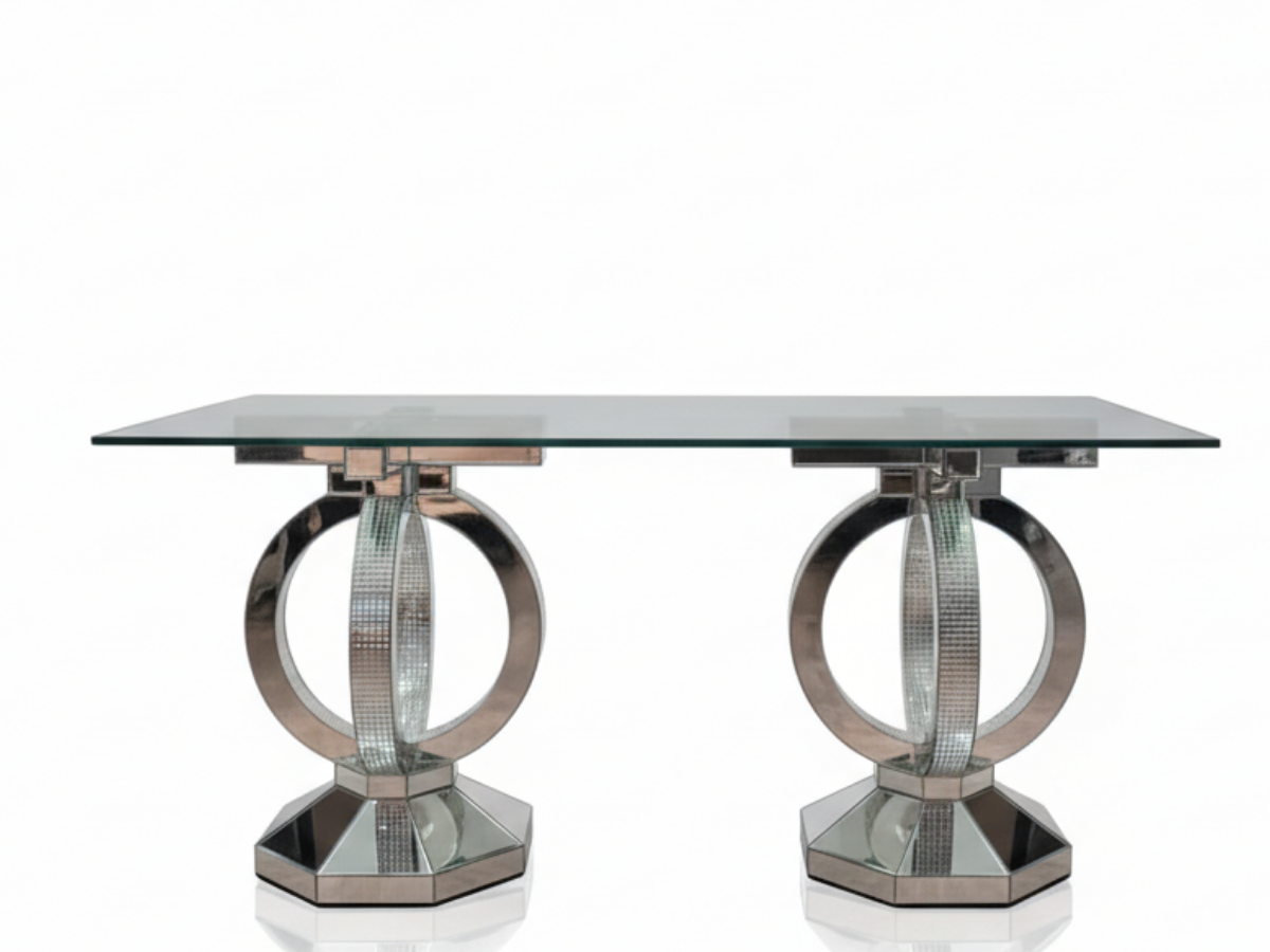 Highlights: Vollflächig verspiegelt mit facettierten Details · Gehärtete Glasplatte, innen Dekosteine (edler Glam-Look) · MDF-Korpus, pflegeleicht.