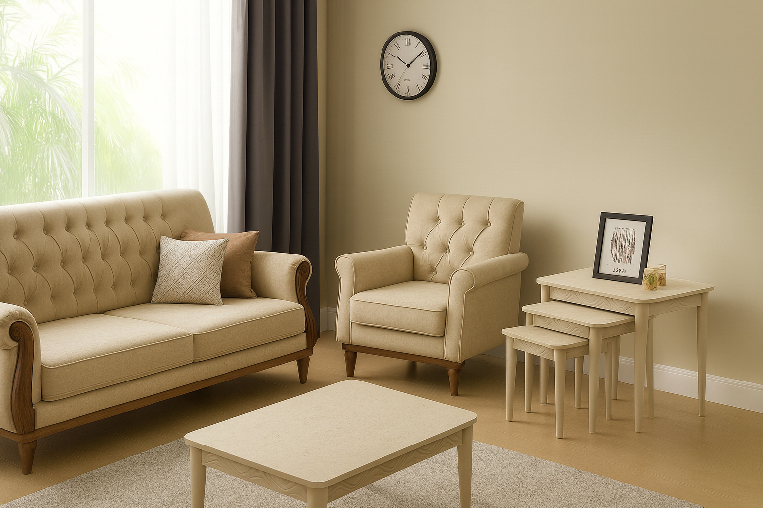 Ob im Wohnzimmer, Loungebereich oder offenen Wohnkonzepten – das Set fällt als funktionales und dekoratives Element positiv auf.