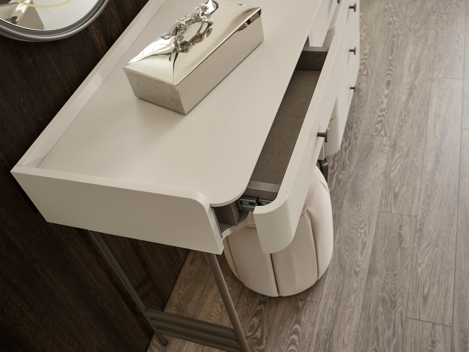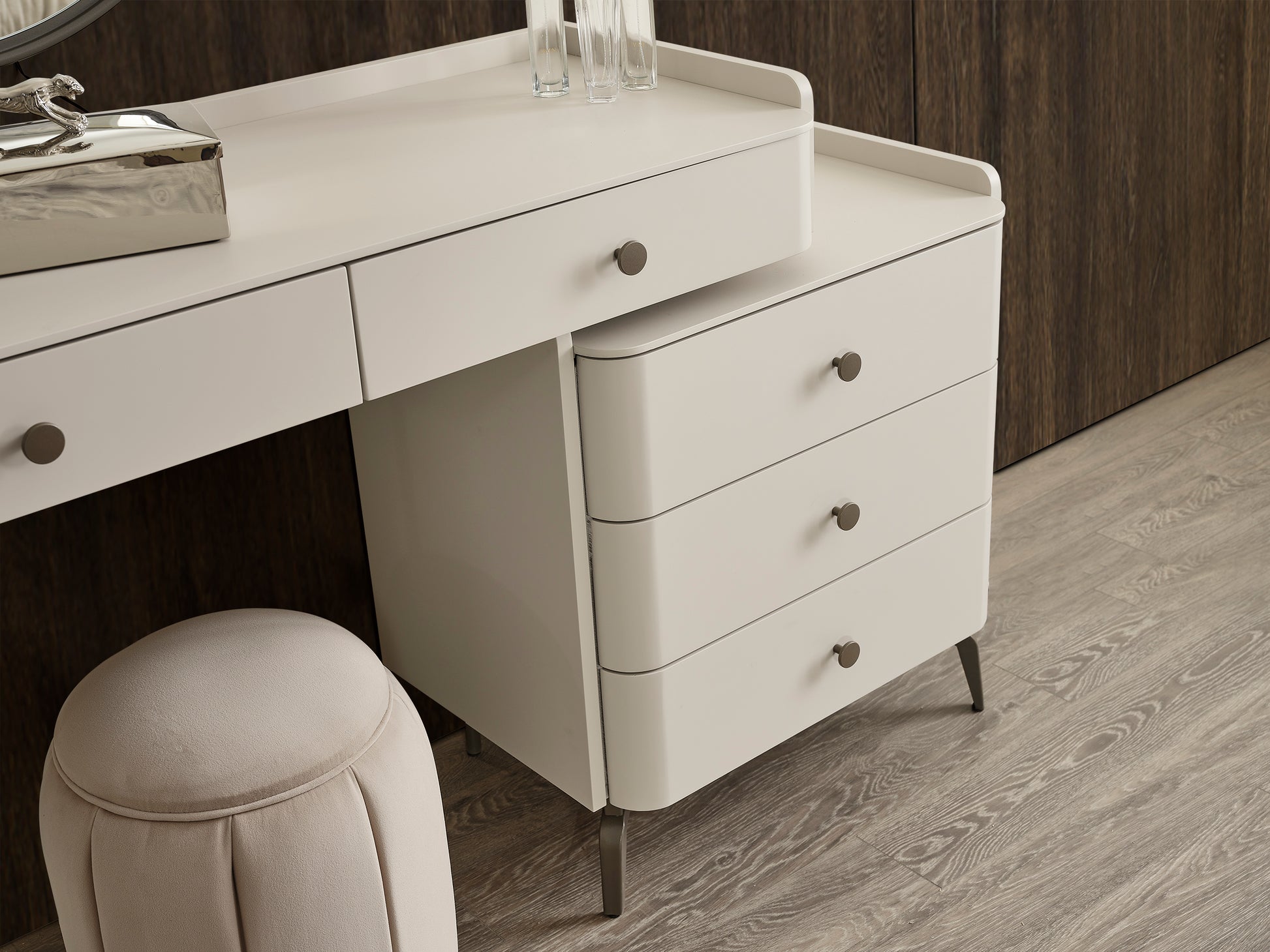 Die Truva Schminkkommode kombiniert modernes Design mit praktischer Funktionalität.