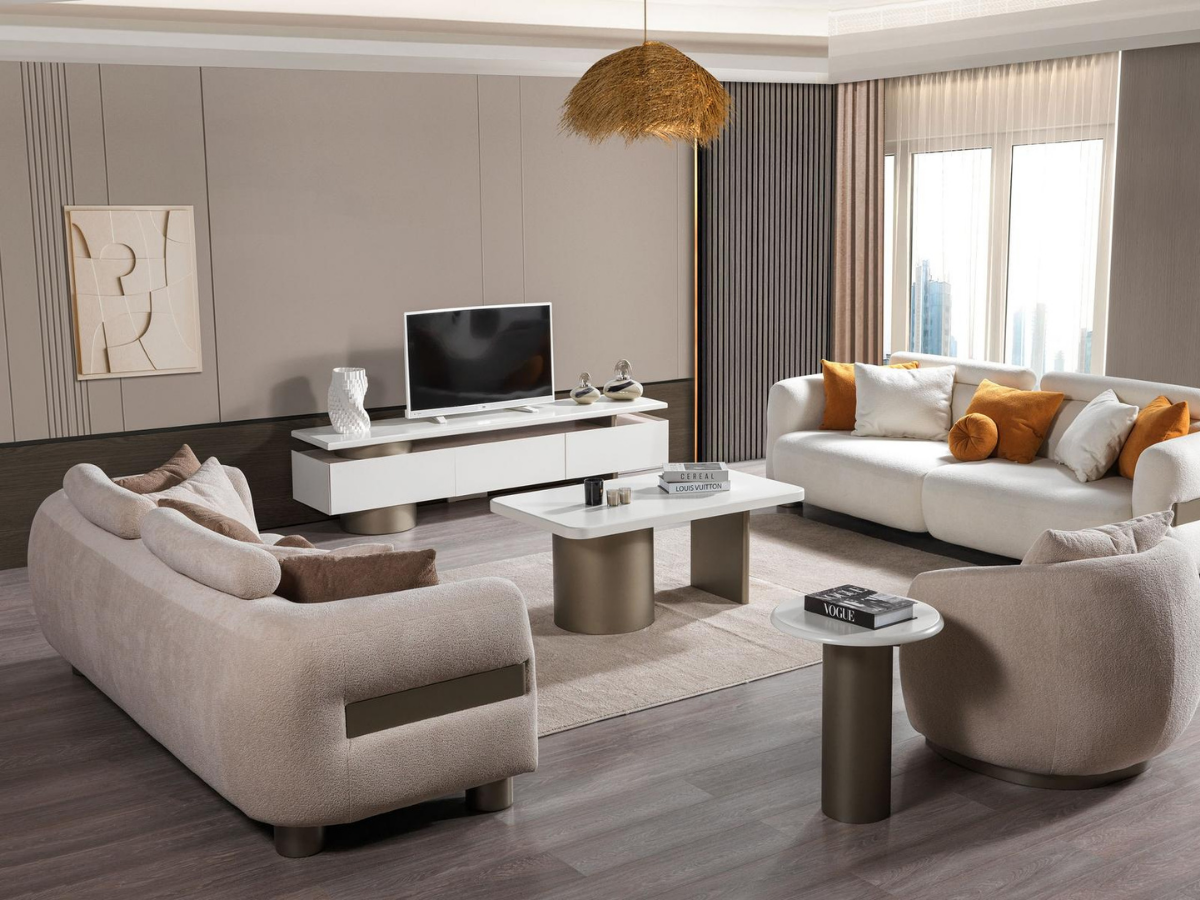 Das Viola Sofa Set vereint modernes Design mit hohem Sitzkomfort. Dank des weichen Bezugsstoffs und der ergonomischen Form bietet es eine angenehme Sitzfläche für den täglichen Gebrauch. Die stabilen Metallfüße und die klaren Linien sorgen für ein elegantes Erscheinungsbild in jedem Wohnraum. Hergestellt aus langlebigen Materialien bleibt die Qualität auch bei intensiver Nutzung erhalten.