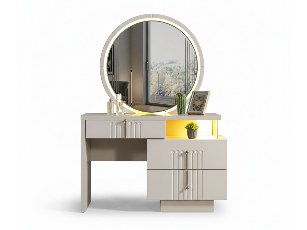 Die Vizon Schminkkommode mit Spiegel vereint Funktionalität und Stil in einem eleganten Design.
