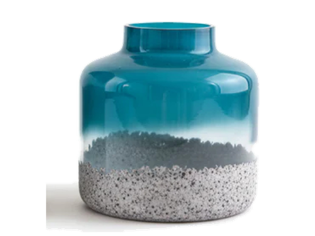 Zeitloses Design mit sanftem Farbverlauf in Türkis und einem unteren Bereich in Steinoptik. Als Solitär oder mit Trocken-/Frischblumen setzt die Vase moderne Akzente im Wohn- und Essbereich.